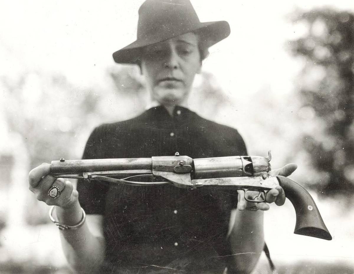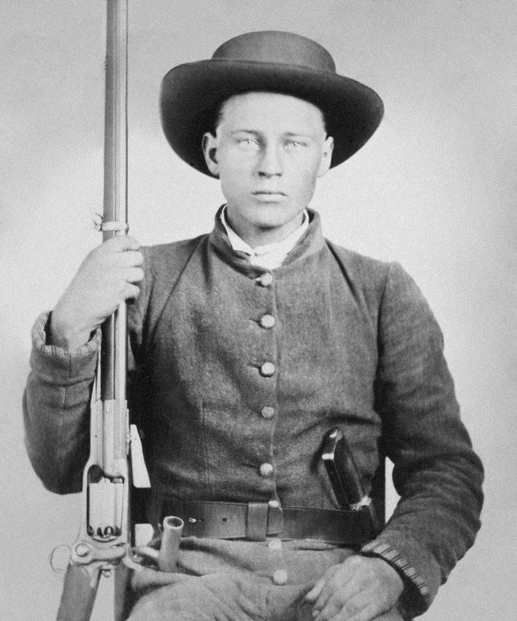 Ve válce Severu proti Jihu bojoval také Jesse Woodson James - americký vůdce gangu, bankovní lupič a vrah ze státu Missouri. Během války se spolu se svým bratrem Frankem účastnil partyzánských bojů na straně Jižanů, po válce se pak jako člen různých zločineckých tlup živil přepadáváním vlaků, dostavníků a bank. Roku 1882 ho zastřelil člen jeho vlastního gangu Robert Ford. Doufal, že získá finanční odměnu, kterou stát vypsal na Jamesovu hlavu. James na snímku pózuje jak jinak než se zbraní značky Colt.