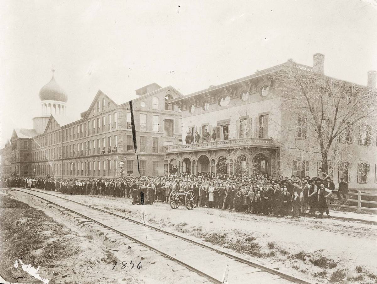 Společná fotografie zaměstnanců továrny z roku 1876.