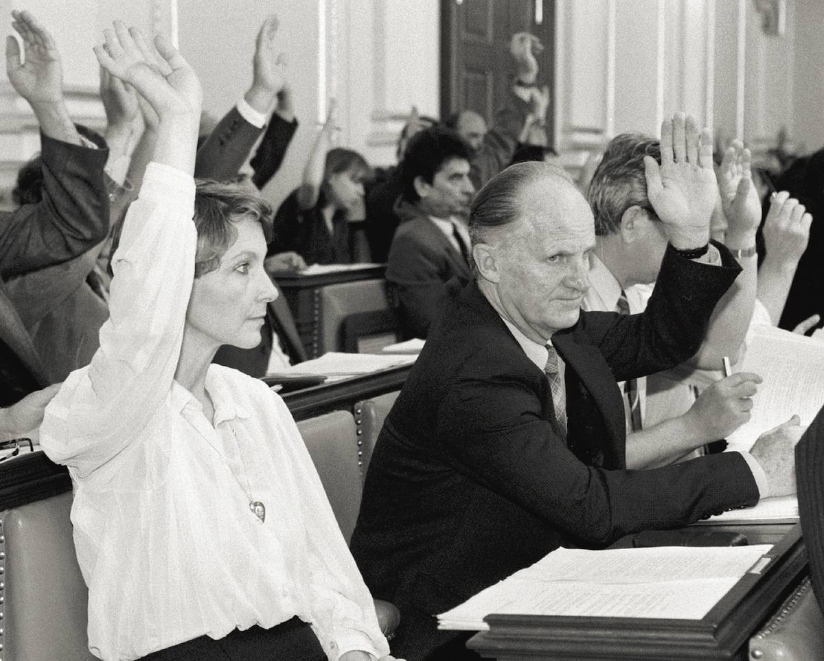 Nejenom herečka, ale i poslankyně. Daniela Kolářová hlasuje během ustavující schůze České národní rady v červnu roku 1990.