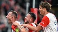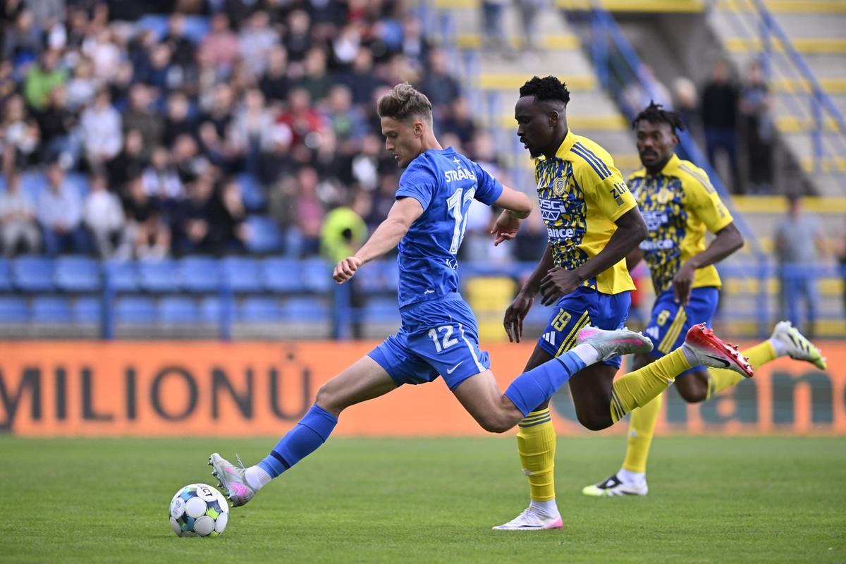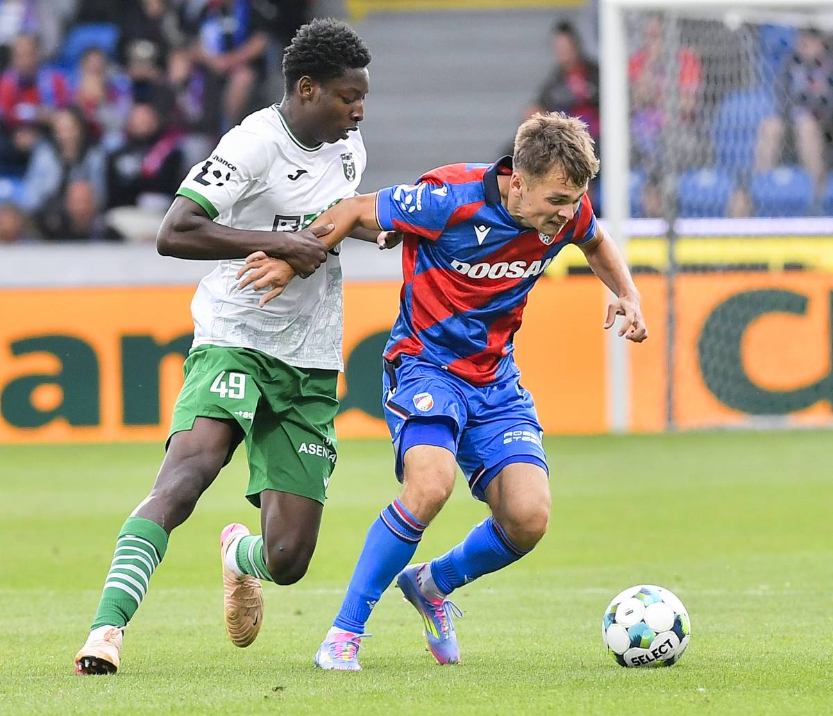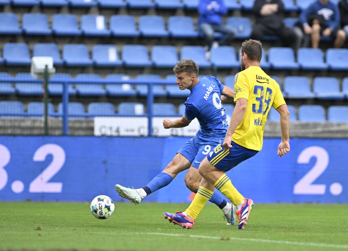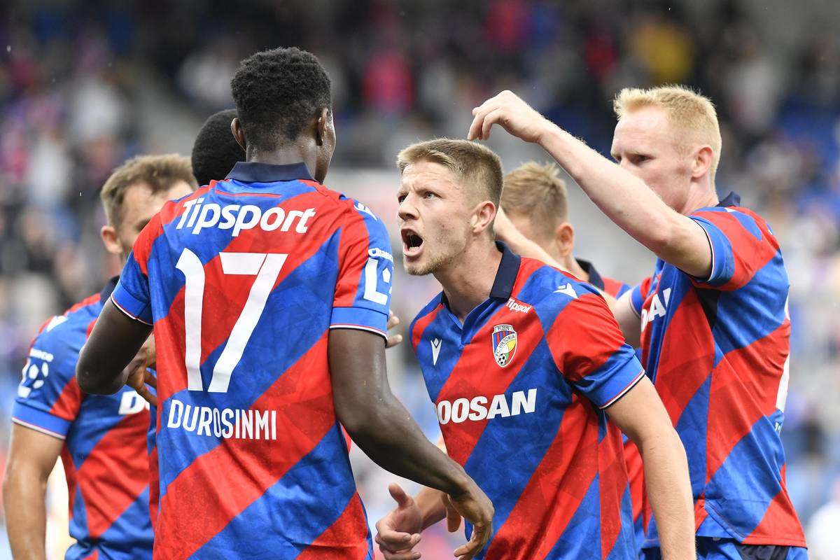6. kolo první fotbalové ligy: Viktoria Plzeň - MFK Karviná, Rok Štorman právě vyrovnává na 1:1.