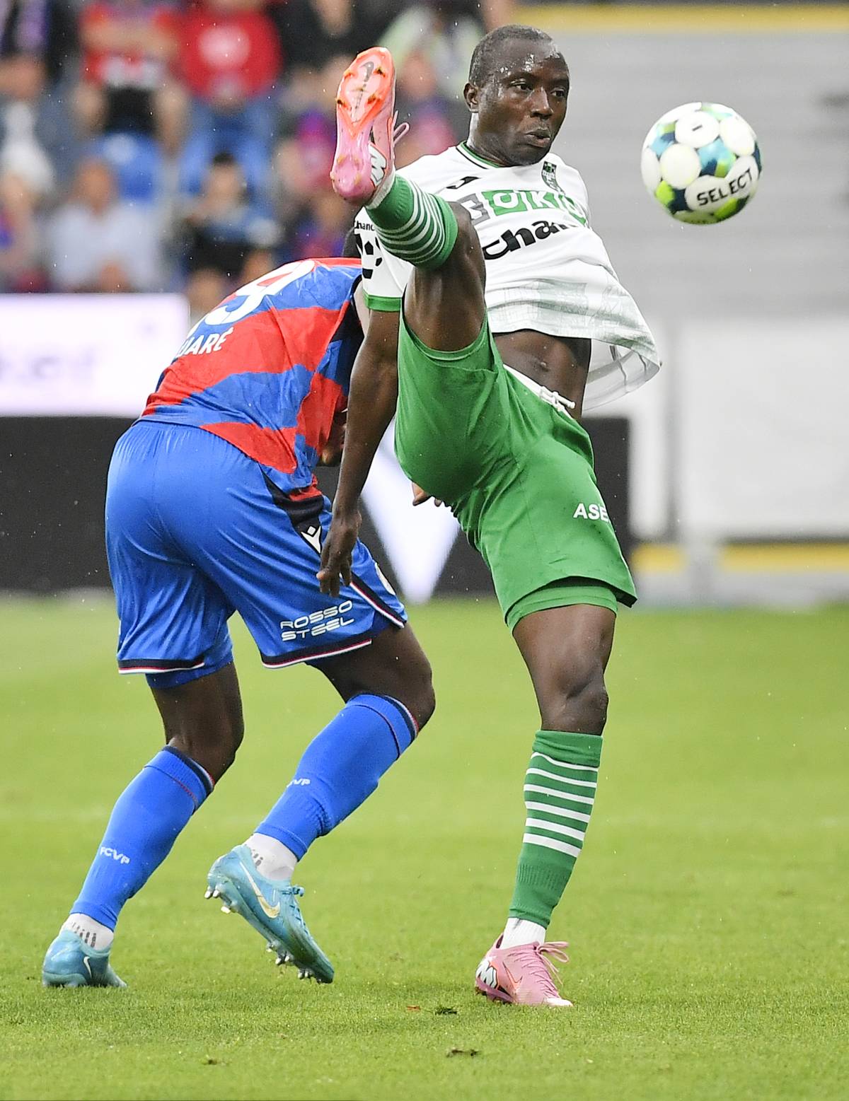 6. kolo první fotbalové ligy: Viktoria Plzeň - MFK Karviná, zleva Cheick Souaré z Plzně, Ousmane Condé z Karviné