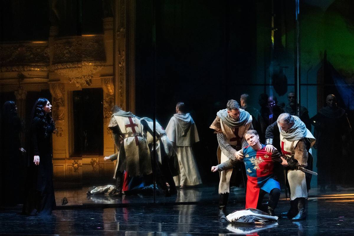 Aleš Briscein jako rytíř Rinald a Andrij Charlamov coby syrský vládce Ismen.