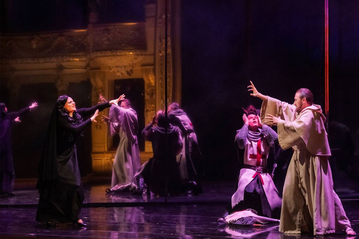 Andrij Charlamov jako syrský vládce Ismen a Libuše Santorisová coby Armida.