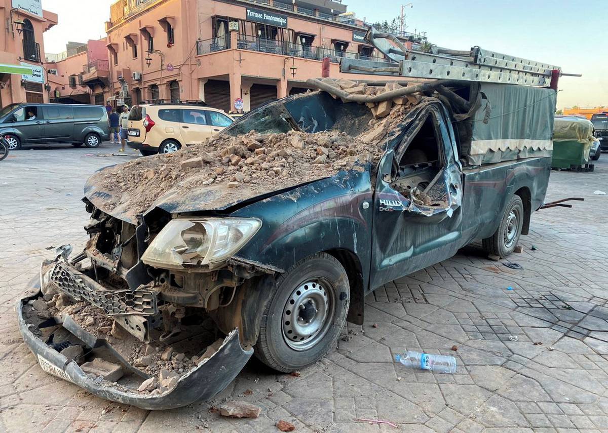 Auto v Marrakéši bylo po zemětřesení pokryto vrstvou prachu.