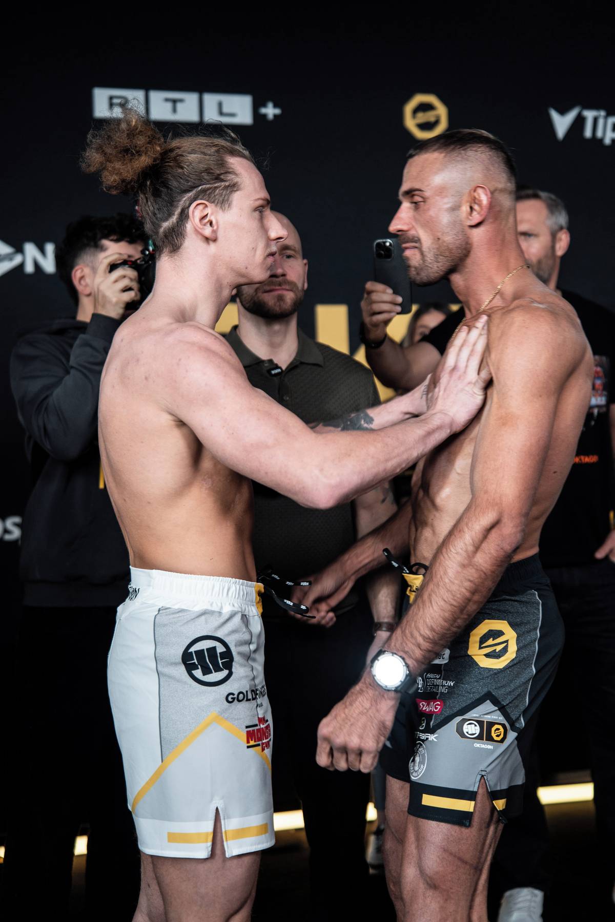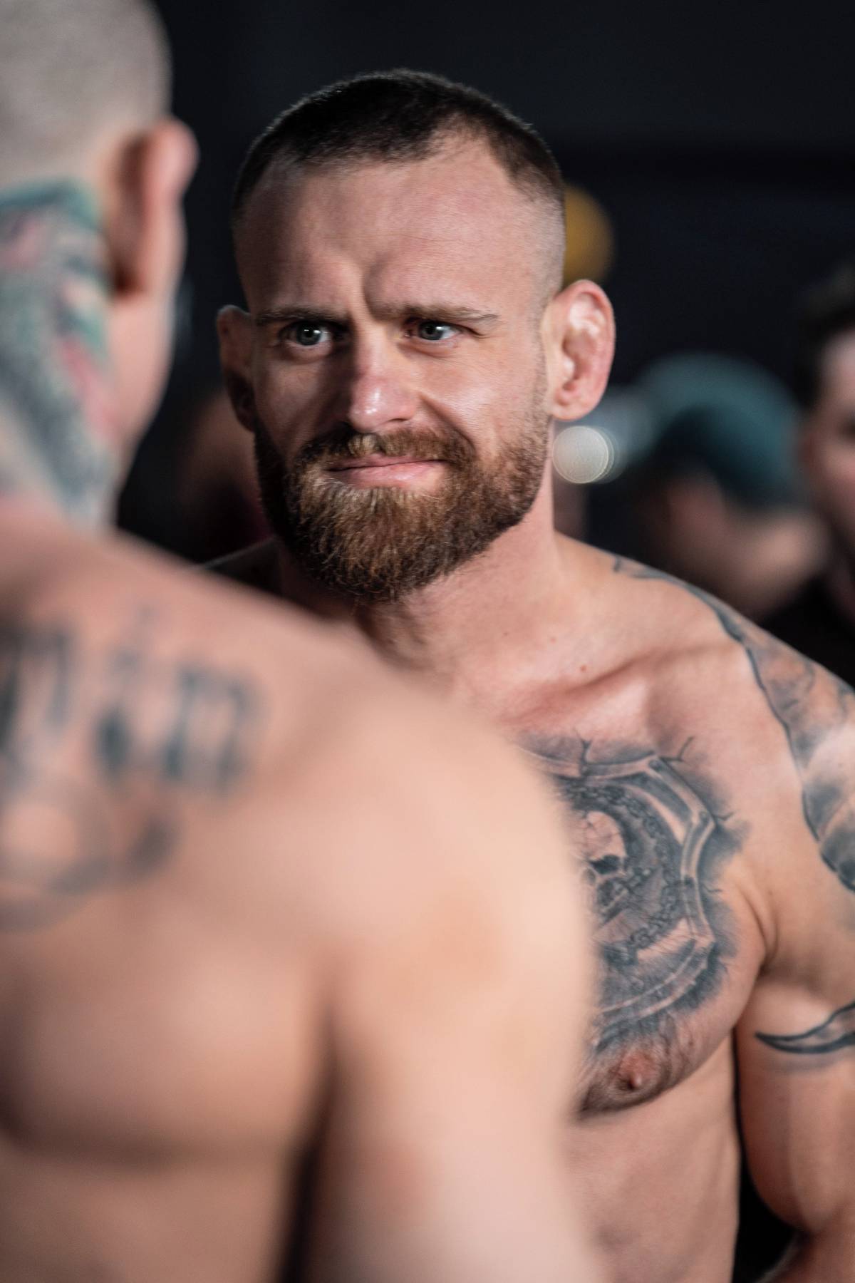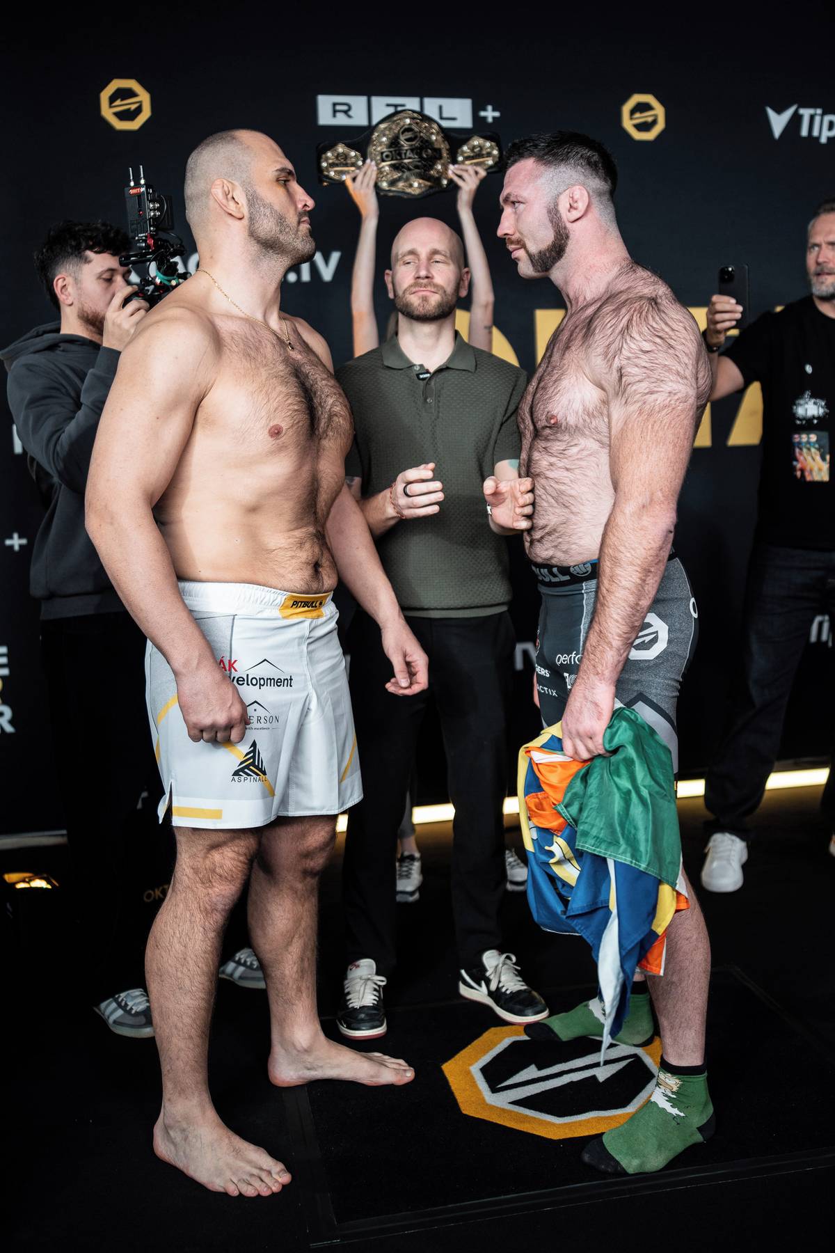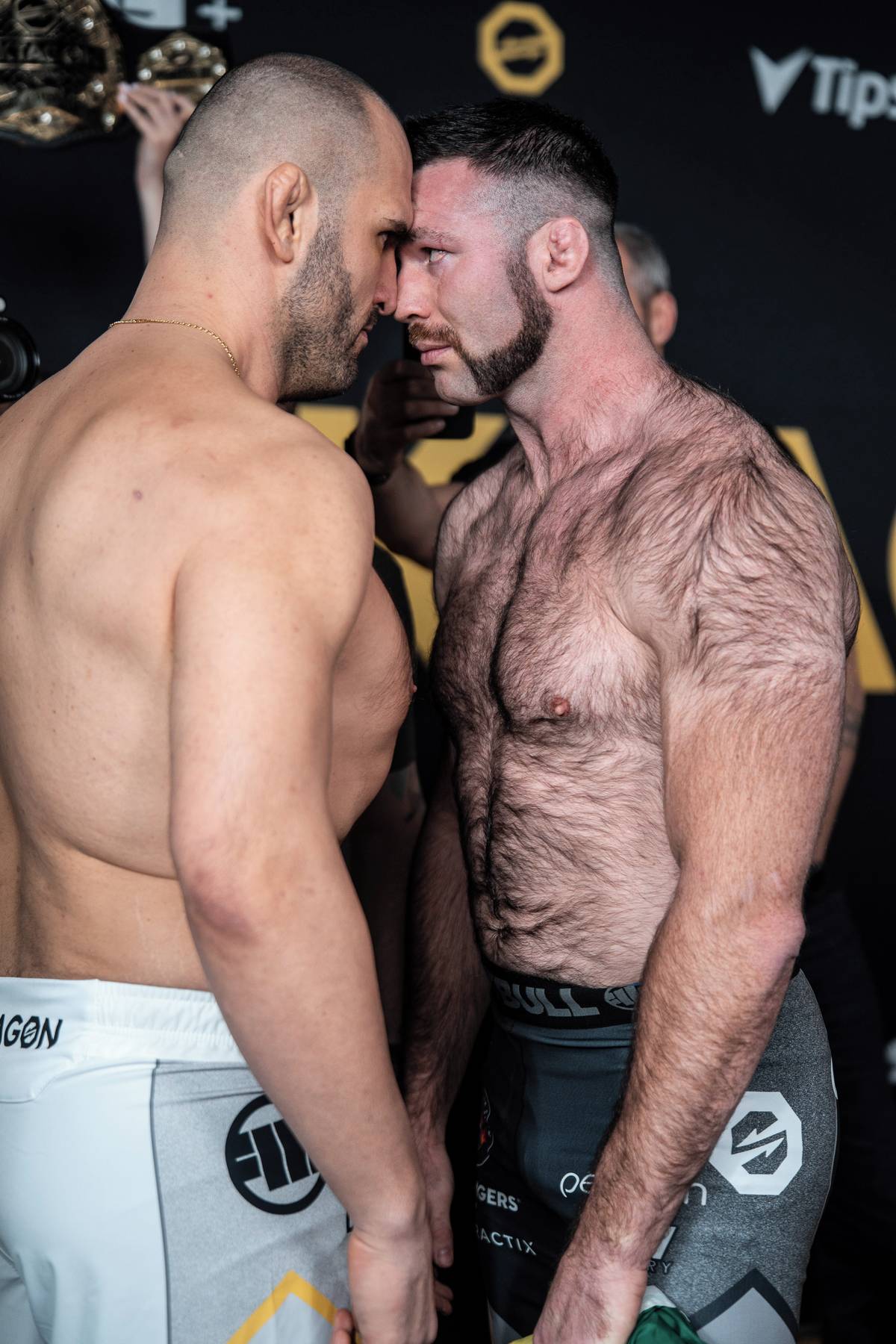 David Dvořák (vlevo) během vyhroceného staredownu.