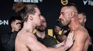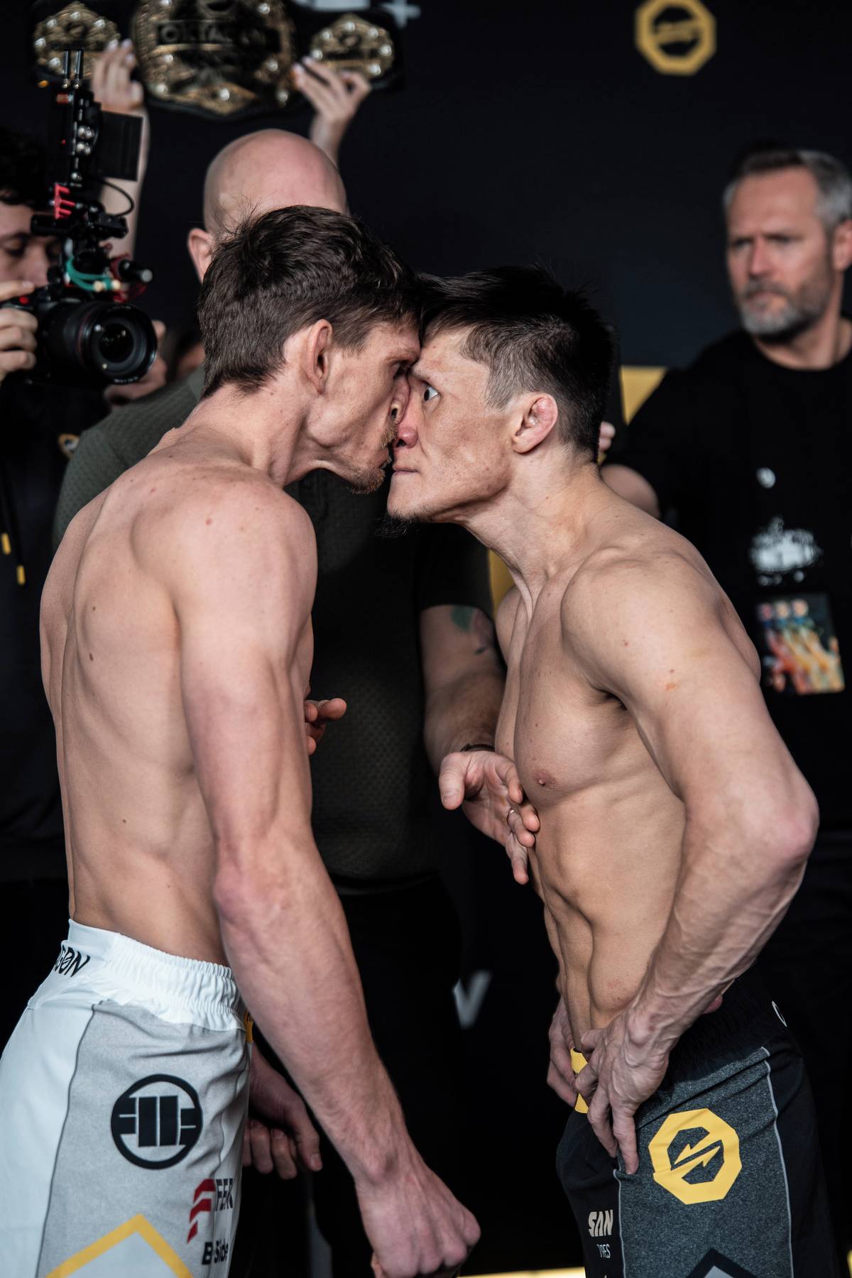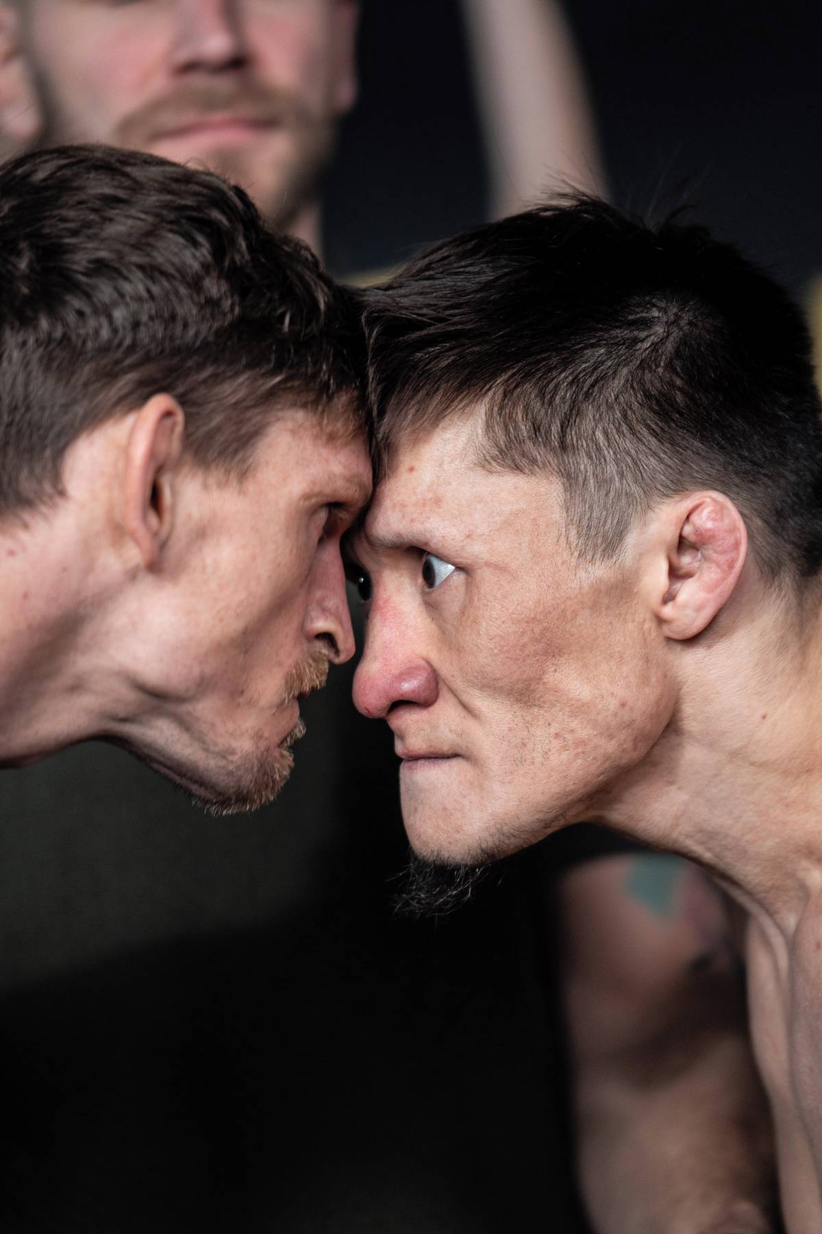 David Dvořák (vlevo) během staredownu s Žalgasem Žumagulovem.