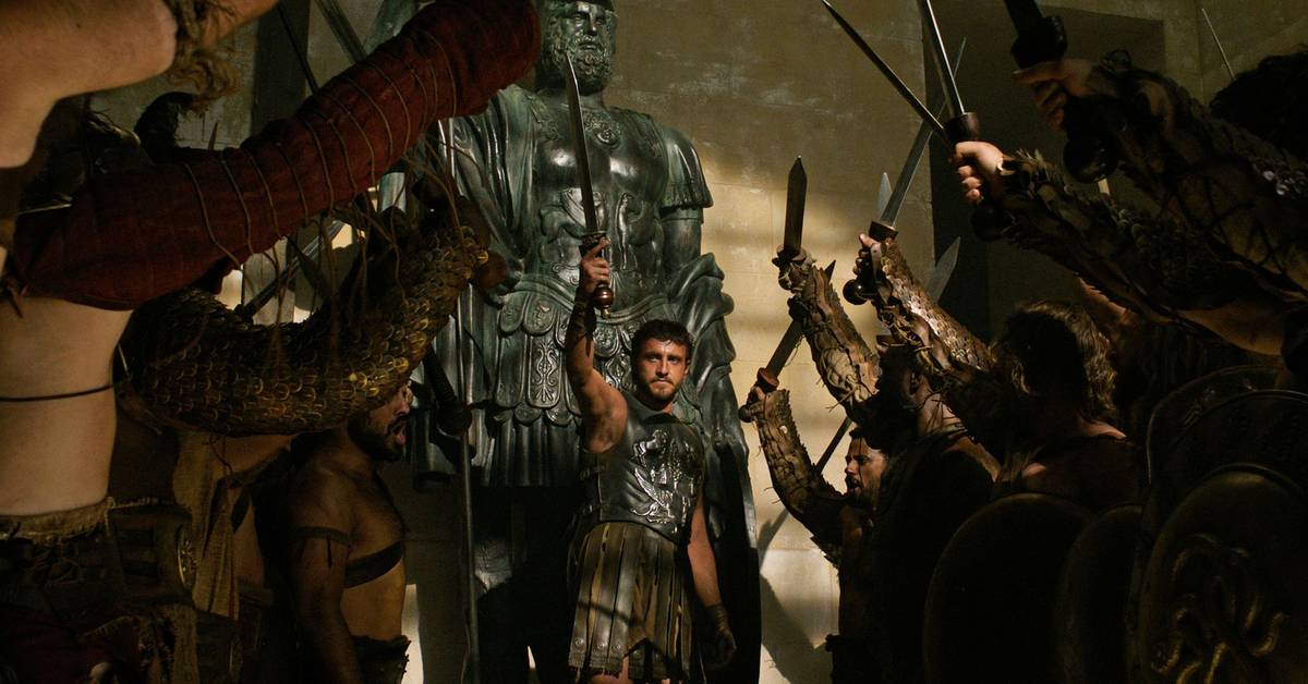 Paul Mescal jako Lucius a Peter Mensah v roli Jugurthy.