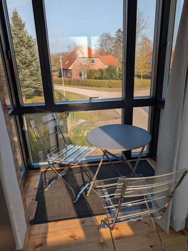 V bývalé trafostanici se nachází kompaktní koupelna se sprchovým koutem, podlahové vytápění, sezení, které má návštěvníky spojit s okolím, a rozkládací pohovka.