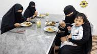 Atiqah Farid obědvá s dcerou, zetěm a vnukem Pashou v oddělené rodinné části restaurace v Temboru. Nikáby mají ženy jen kvůli přítomnosti fotografa. Pokud by byla rodina samotná, můžou je odložit.