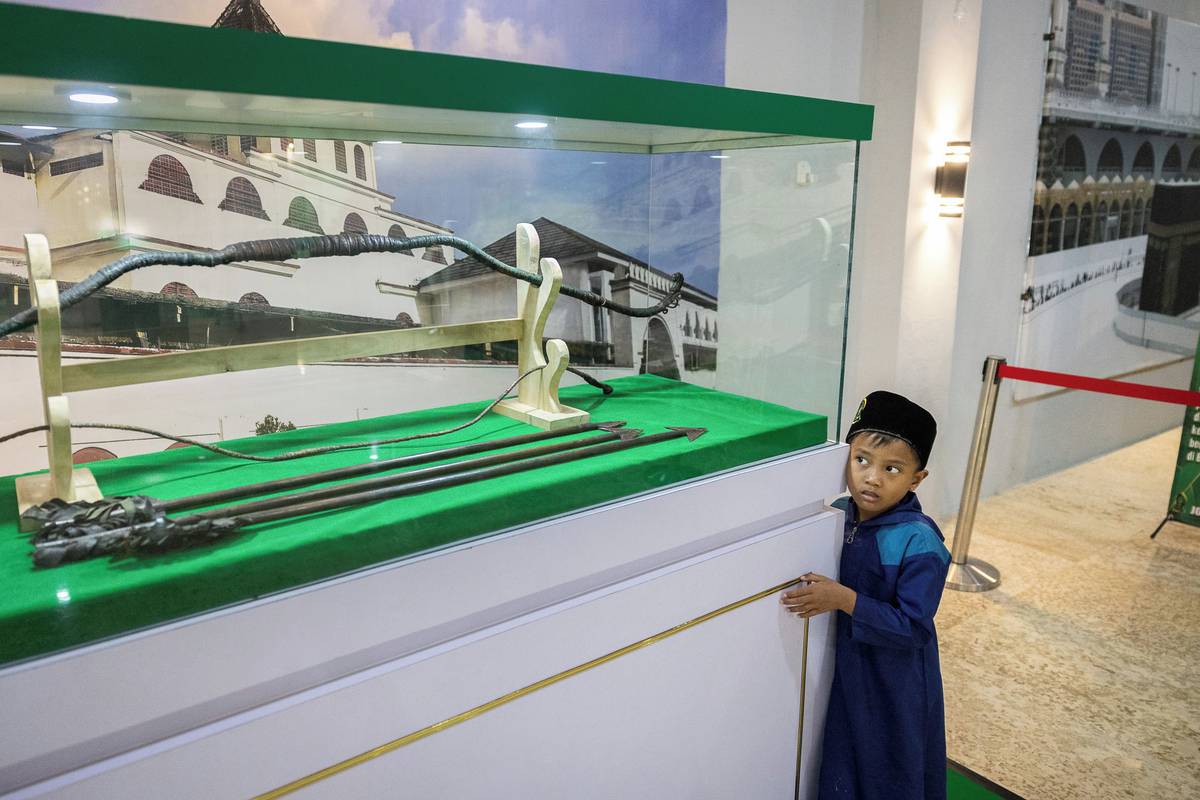 Chlapec s bázní pozoruje luk a šípy, které dle certifikátu pravosti patřily samotnému Prorokovi. Předměty daroval místnímu šejkovi malajský sběratel profesor Abdul Manan Embong z Universiti Malaya v Kuala Lumpur. Pro ověření pravosti najalo muzeum experta a samo vystavilo certifikáty.