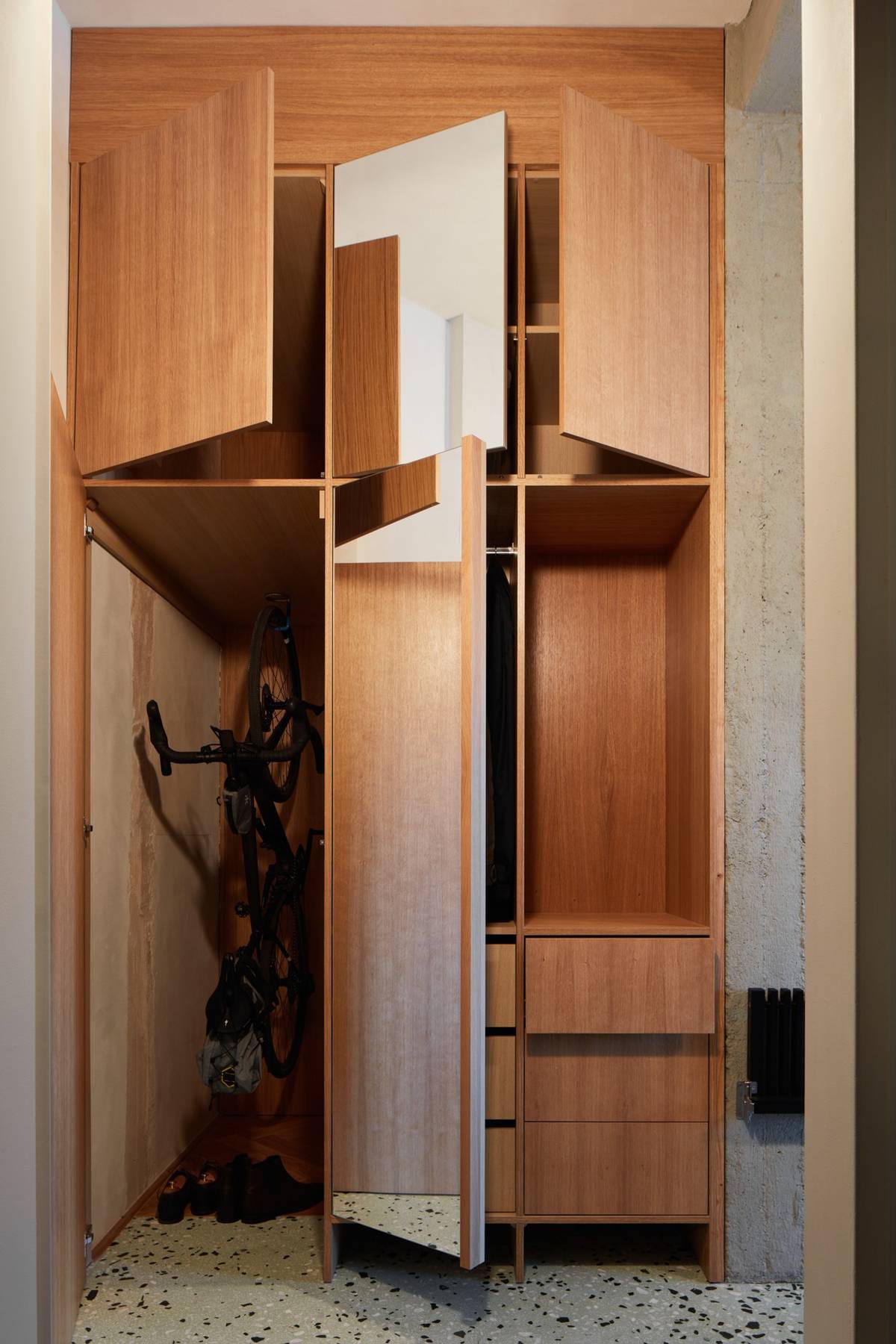 Do dělicí stěny navrhli dokonce i prostor pro kolo