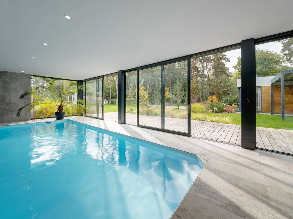 Vila má vnitřní bazén s výhledem do zahrady.
