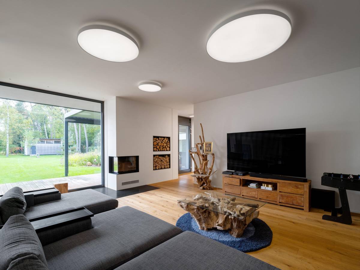 Vedle dřevěných podlah v interiéru dominují sofistikovaná světelná řešení, kvalitní materiály a otevřené výhledy dopřávající přímý kontakt s přírodou.