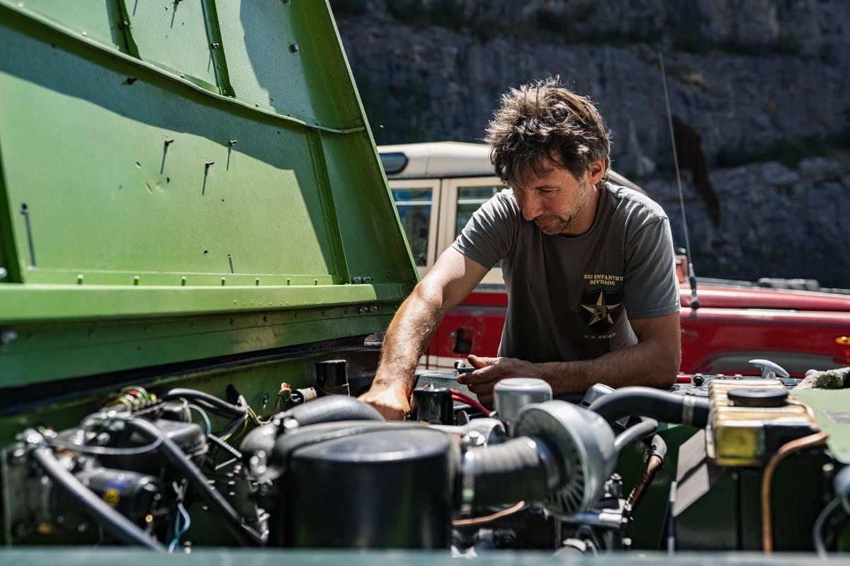 Jindřich Uhlář a jeho první generace Land Roveru Defender.