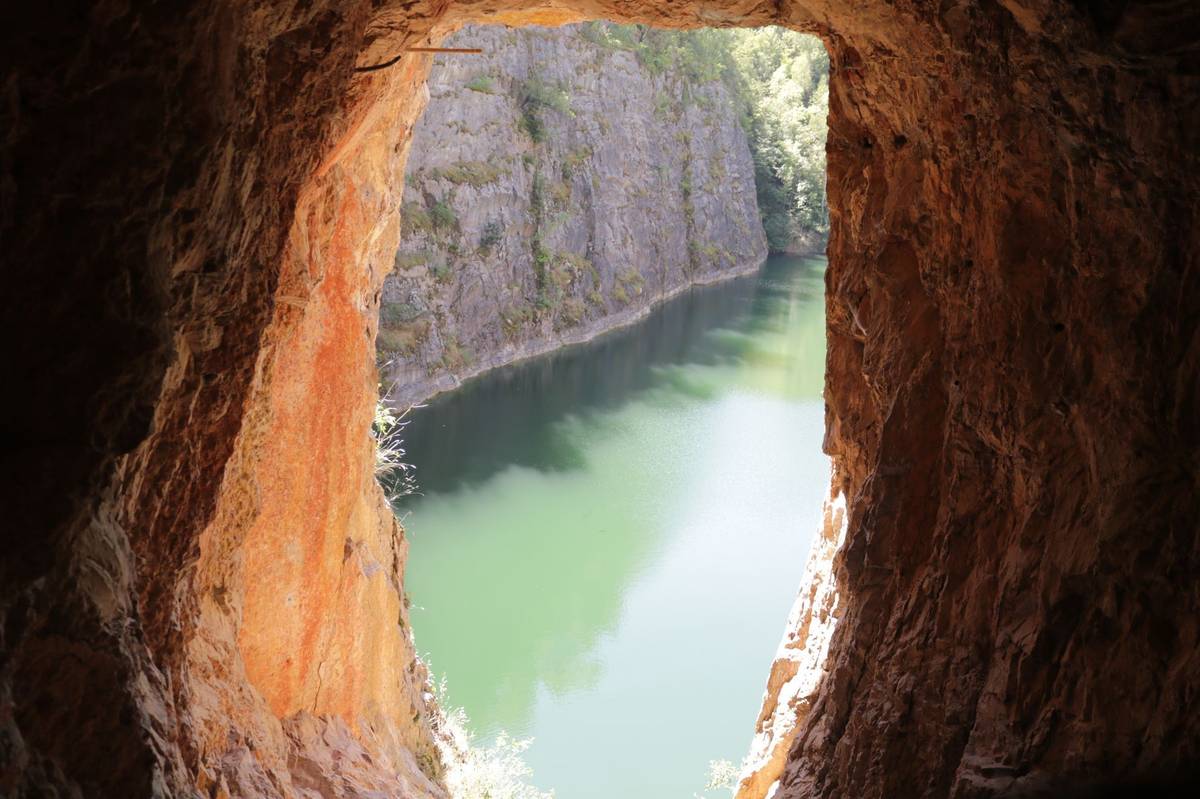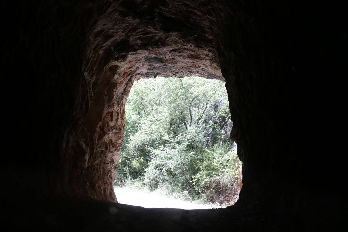 ... a musíte projet tunel ve skále. Vstup chrání velká kovová vrata.