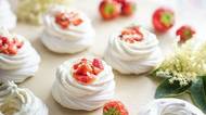 Nejrychlejší křehounká mini Pavlova s jahodami a květy černého bezu