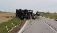 Na silnici z Třebíče do Telče se převrátilo nákladní auto, silnice byla do večera uzavřená
