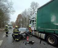 Při nehodě u Drhovle se zranila jedna žena. Silnice už je průjezdná