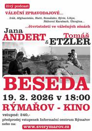 O své zkušenosti, morální dilemata i silné momenty se v Rýmařově podělí bývalí váleční zpravodajové Jana Andert a Tomáš Etzler na besedě pořádané Jazzclubem SVČ Rýmařov. Pokud hledáte autentický pohled do reality světových konfliktů, tohle setkání vás zasáhne i obohatí.