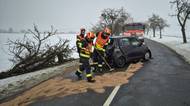 Dopravní nehoda na Kroměřížsku: Řidič sjel ze silnice a naboural do stromu, ten se silným nárazem zlomil
