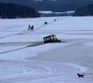 Na Lipně se potopila rolba. Vjela do praskliny v ledu