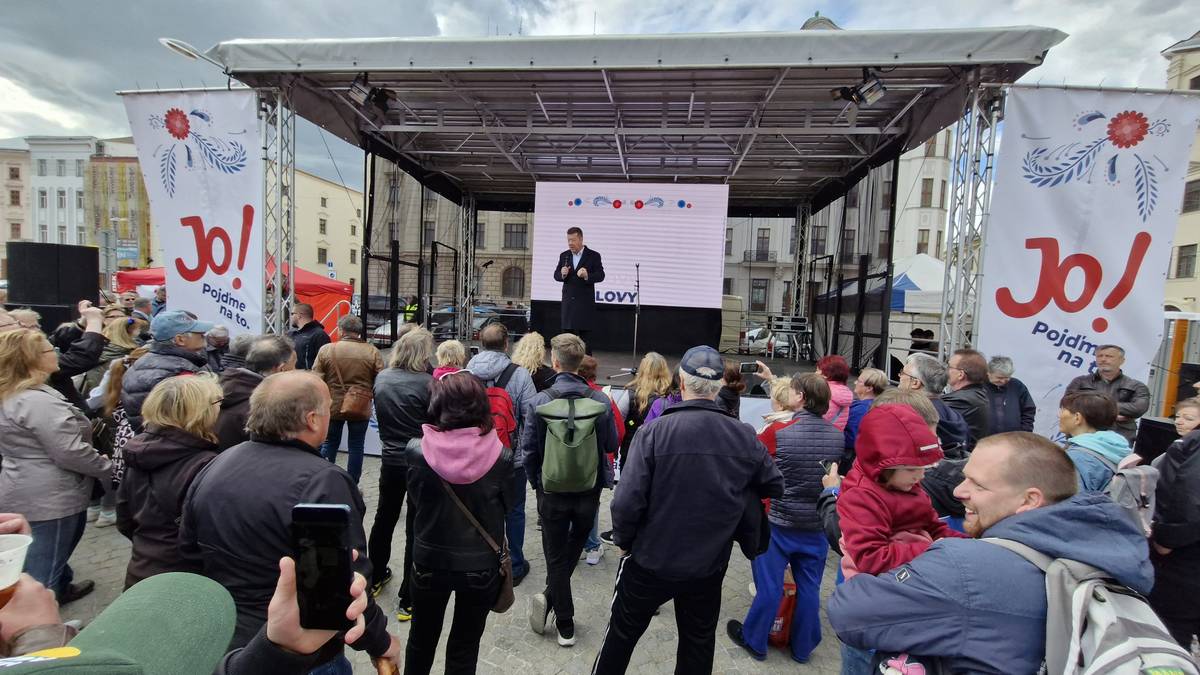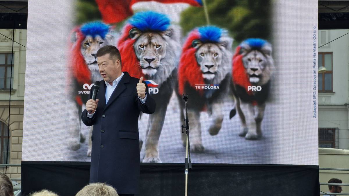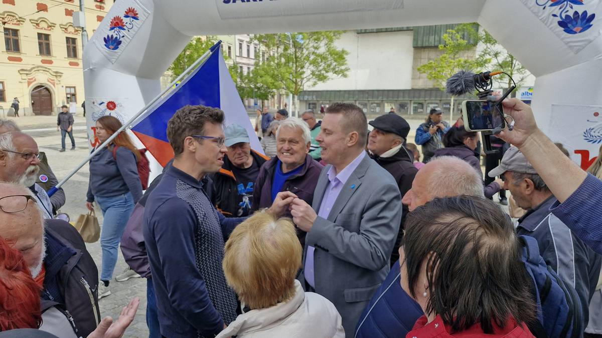 Šéf SPD Tomio Okamura na jarmarku v Jihlavě