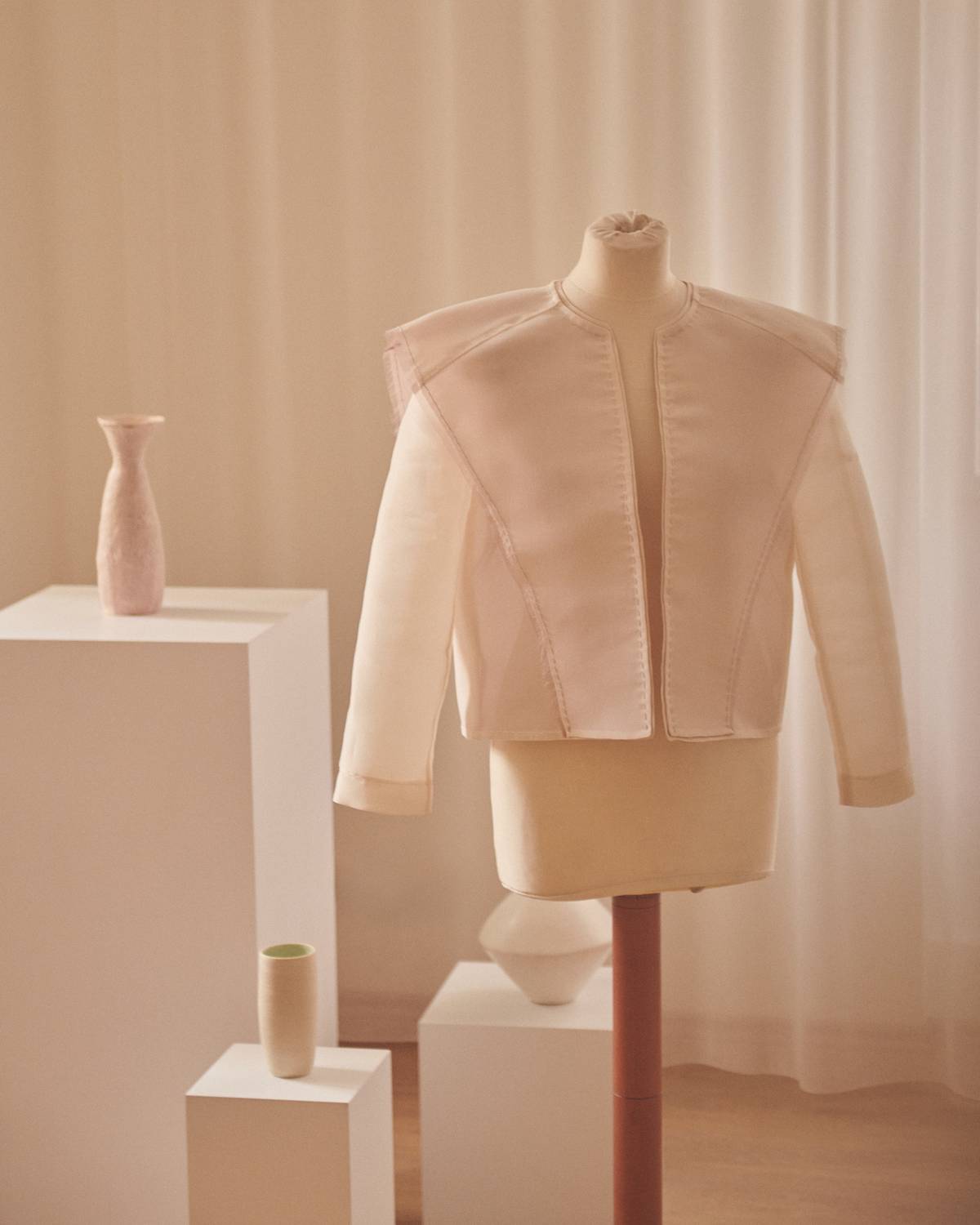 Oceňovaná designérka má zkušenost i s textilním materiálem, z přírodních materiálů (organza, hedvábí) navrhla v „kimonovém střihu“ šatů jednoduchý overal ve spolupráci s Port of Stars.