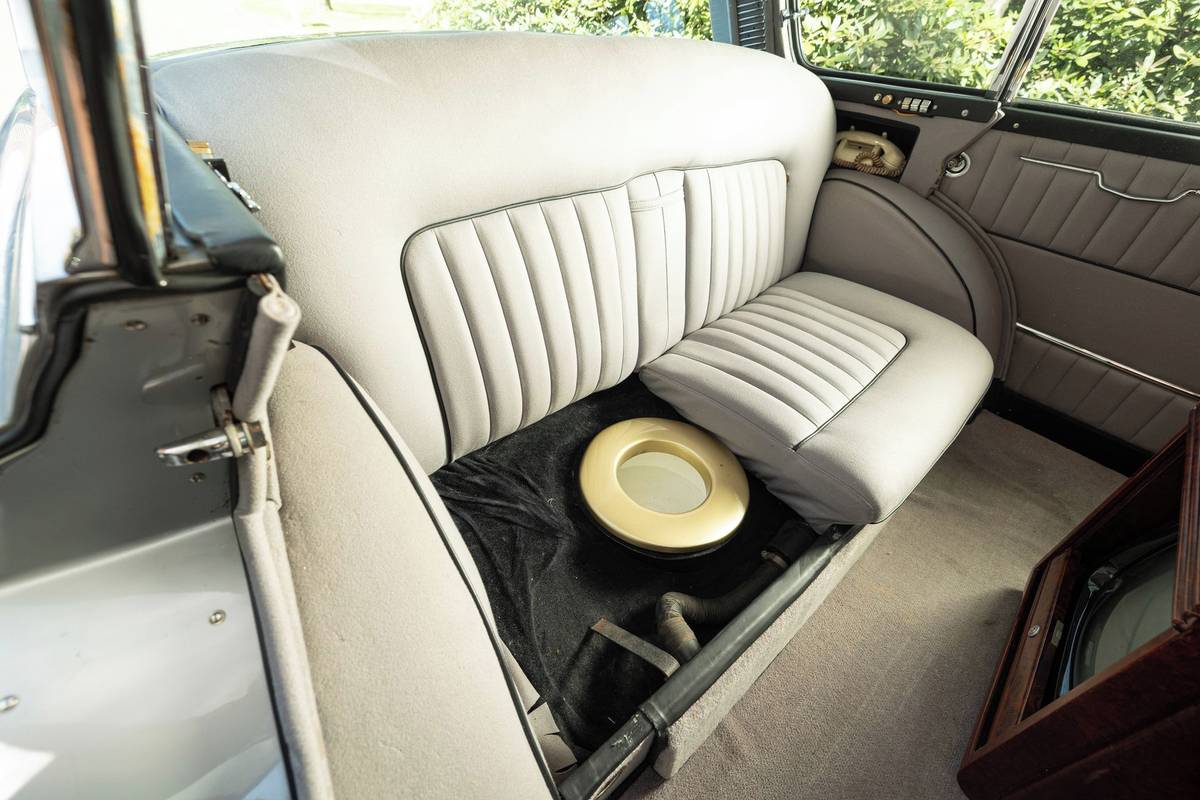 Vzadu jsou potahy z šedé látky. Autotelefon, viditelný na boku interiéru, byl zřejmě instalován později.
