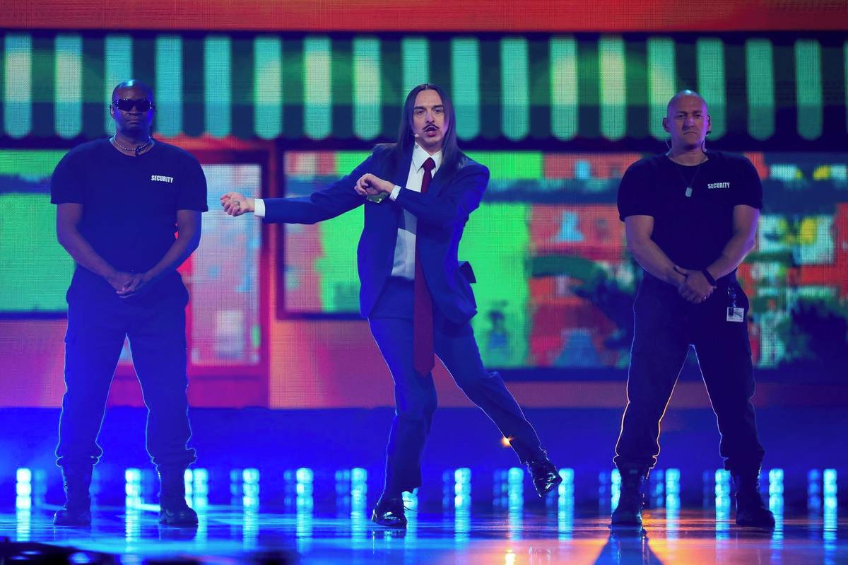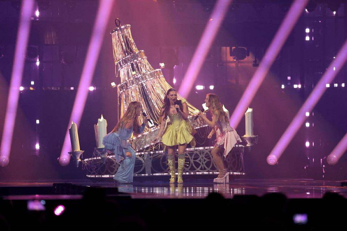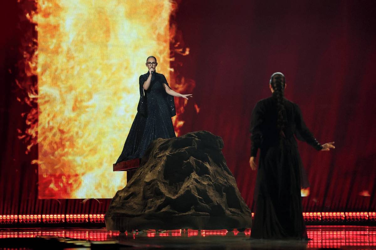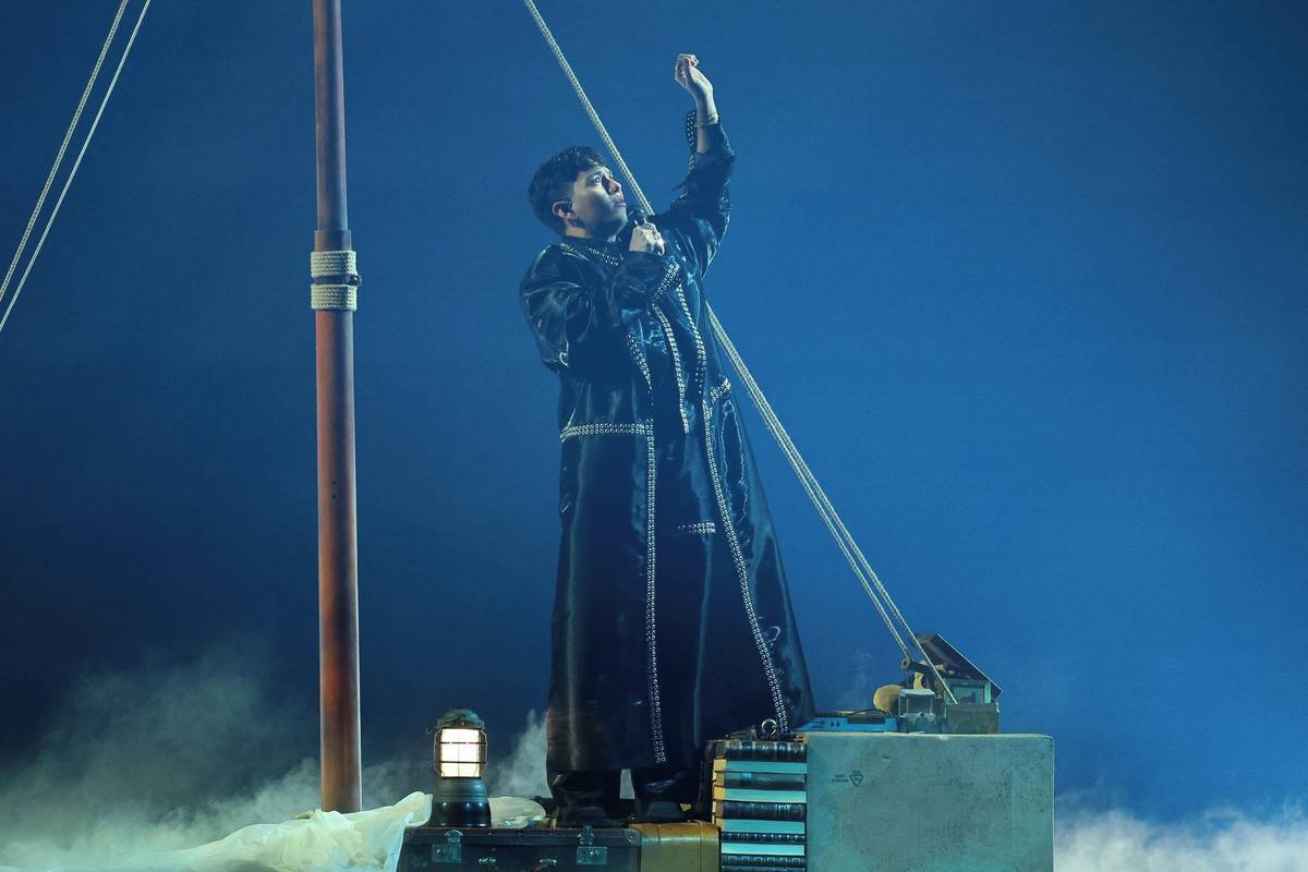 Finálový večer odstartoval nebinární zpěvák Nemo stylizovaný do barokní operní divy. Moderátorky si z něj hned v úvodu udělaly legrai, když připomněly, že loni hned po převzetí rozbil trofej pro vítěze.