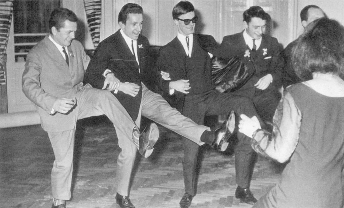 Jan Palach (druhý zprava) na svatbě bratra Jiřího v roce 1966.