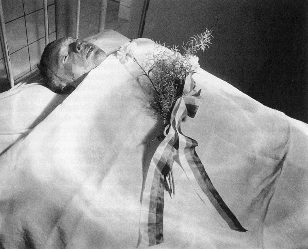 Fotografie Jana Palacha krátce po jeho smrti 19. ledna 1969, kterou na místě pořídil Vladimír Tůma.