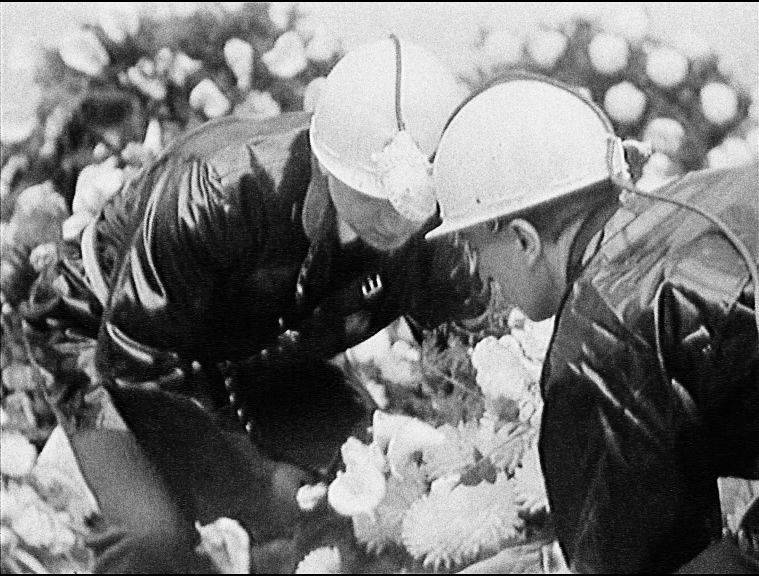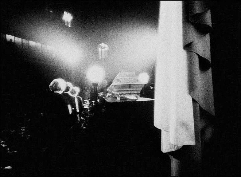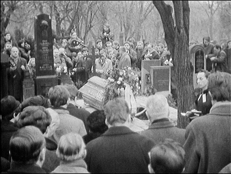 Pohřební průvod. Uprostřed Palachova matka Libuše, vlevo její druhý syn Jiří, vpravo jeho manželka Ilona.