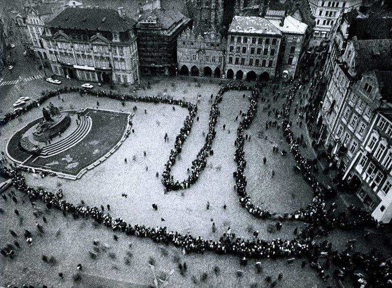 A to už se píše leden 1989. Kordon příslušníků SNB během demonstrace k 20. výročí upálení Jana Palacha v Praze na Václavském náměstí. Palachův týden tehdy odstartoval protesty a demonstrace, které ještě týž rok vedly po policejním masakru studentů na Národní třídě (17. listopadu) k pádu komunistického režimu.