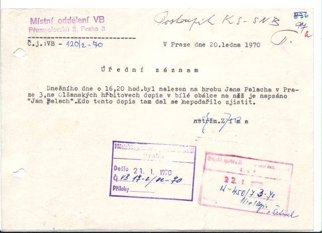 Bezpečnost od počátku Palachův hrob hlídala, jak dokazuje i tento dokument.
