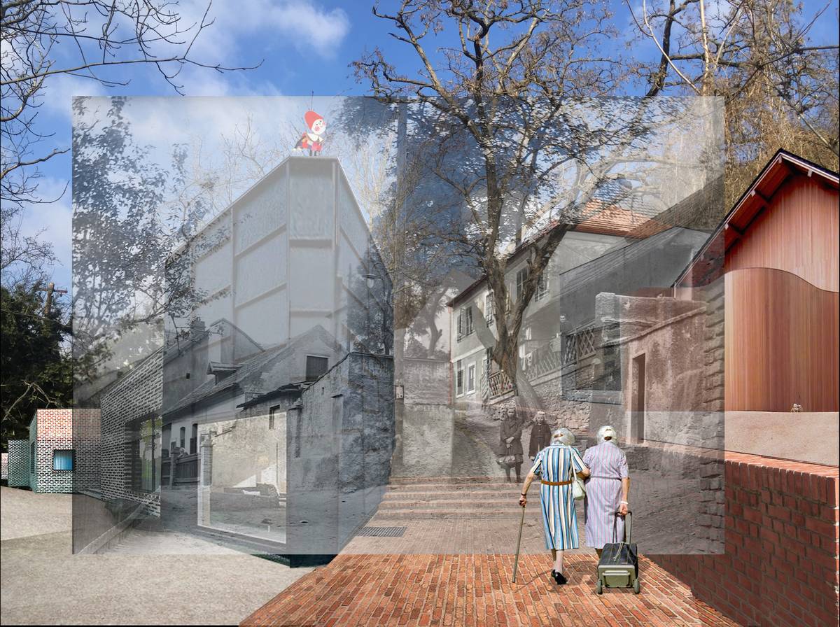 Touto prolínačkou chtělo studio She Architect ukázat prostoupení minulosti a dneška. Z buďánkovských holčiček, zachycených na fotografii, by dnes byly stařenky.