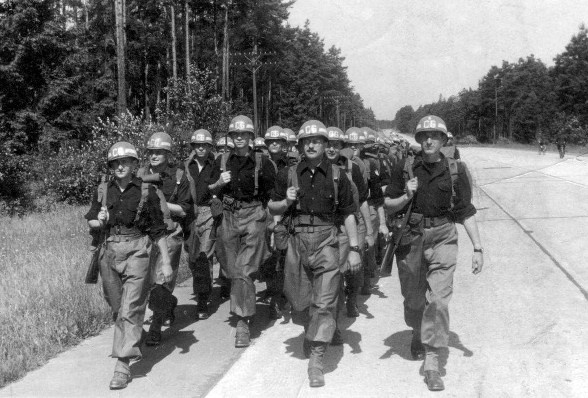 Spolková republika Německo, pochod příslušníků čs. strážní roty, do které po útěku z Leopoldova Raichl vstoupil. Pochodují Češi, Slováci, Podkarpatští Rusíni i volyňští Češi. I když používají americkou výstroj, nejsou příslušníky americké armády, ale jakýmisi jejími zaměstnanci z řad cizinců. Jsou bráni jako zvažovaný zárodek třetího čs. zahraničního odboje.