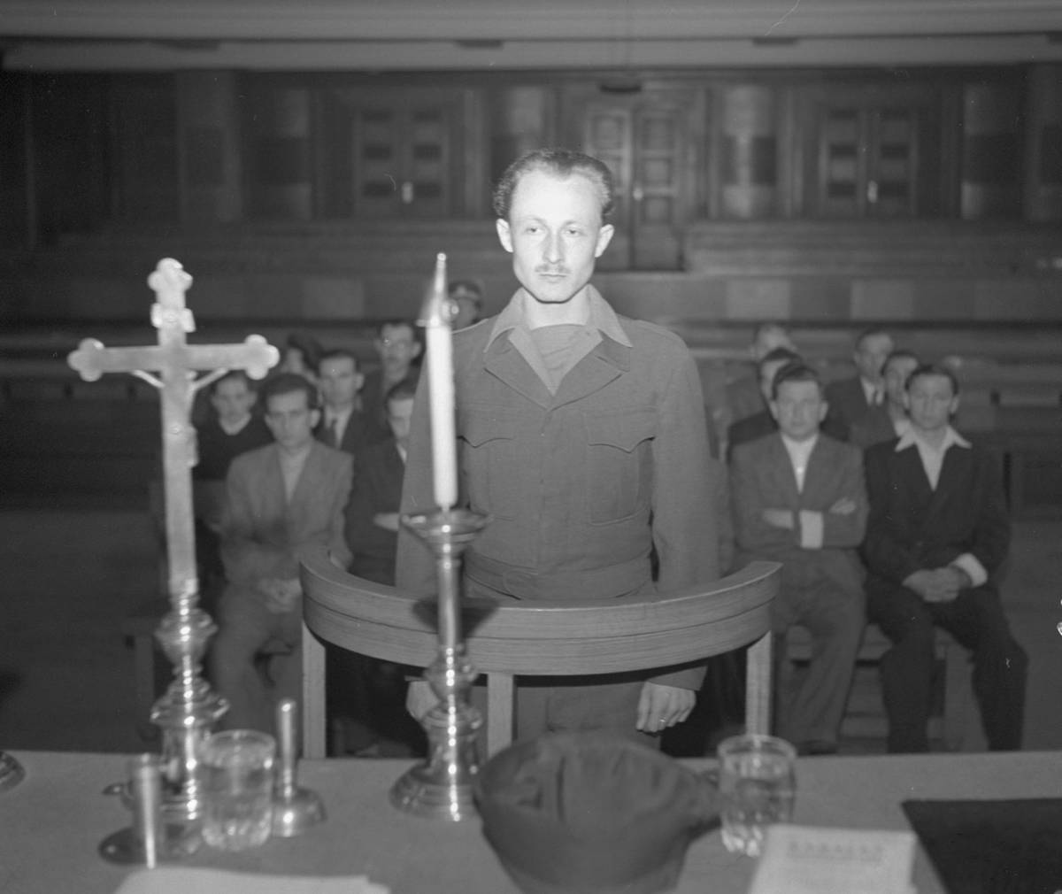 Rok 1947, policejní fotografie zatčeného poručíka Pravomila Raichla.