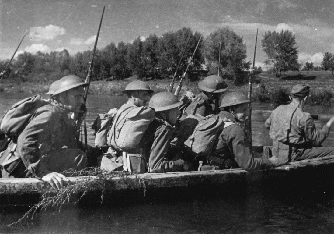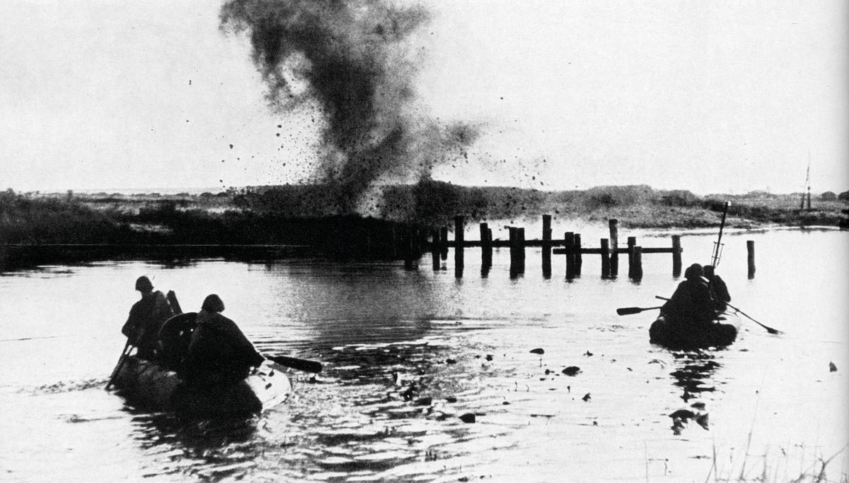 Opět snímek z roku 1943. Sovětské jednotky překonávají řeku Dněpr.