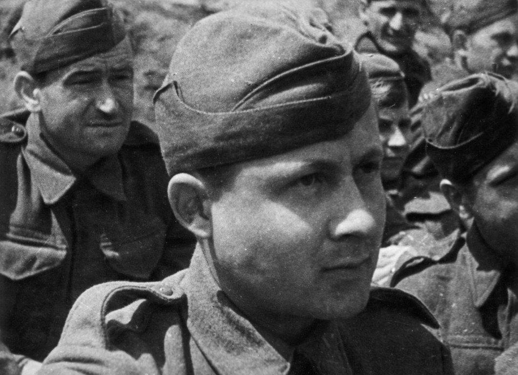 Zpět do roku 1942: Sovětský svaz, východní fronta. V záložní poddůstojnické škole v Buzuluku se setkávají Pravomil Raichl a Jiří Větvička (vzadu vlevo), později autor knihy Válka začíná až zítra. Na tomto místě byli lidé s rozdílnými motivy i politickými názory. Spojovalo je ale odhodlání osvobodit vlast a porazit nepřítele.