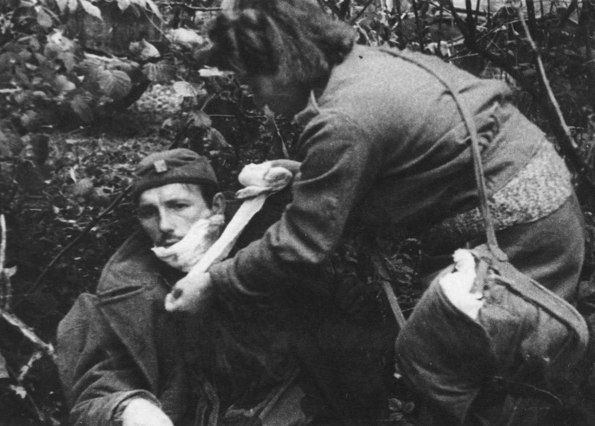První pomoc v nejtěžších podmínkách v bojích o Dukelský průsmyk.
