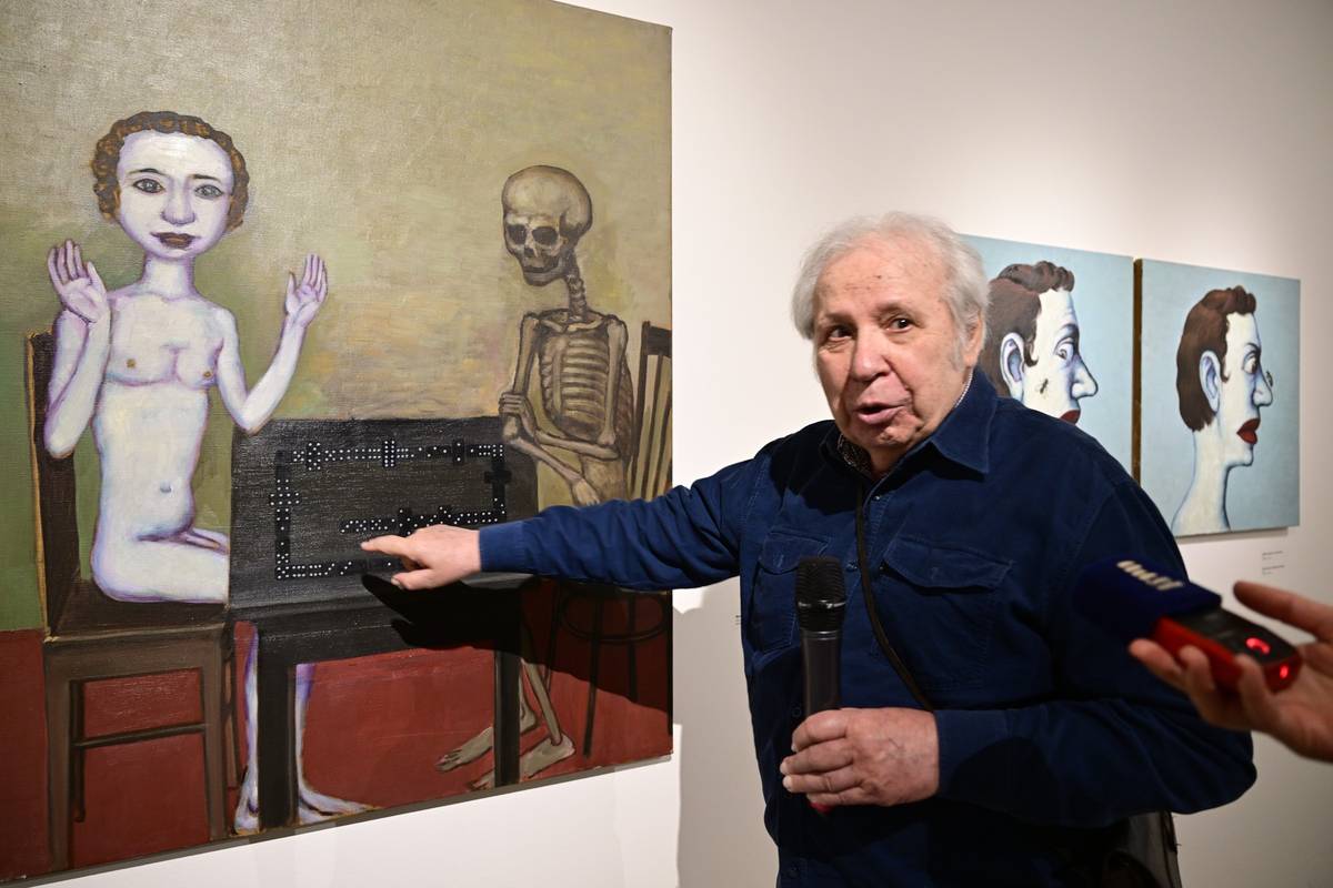 Viktor Pivovarov na komentované prohlídce své výstavy v DOX.