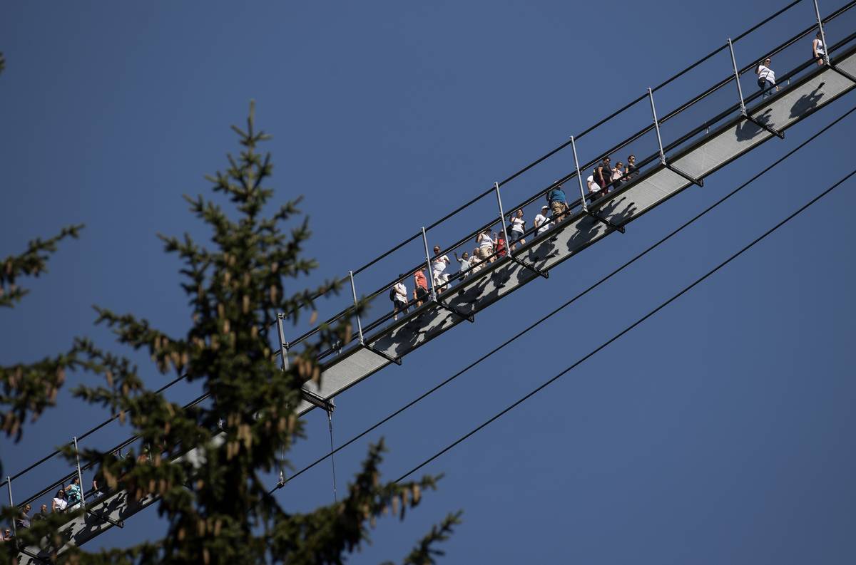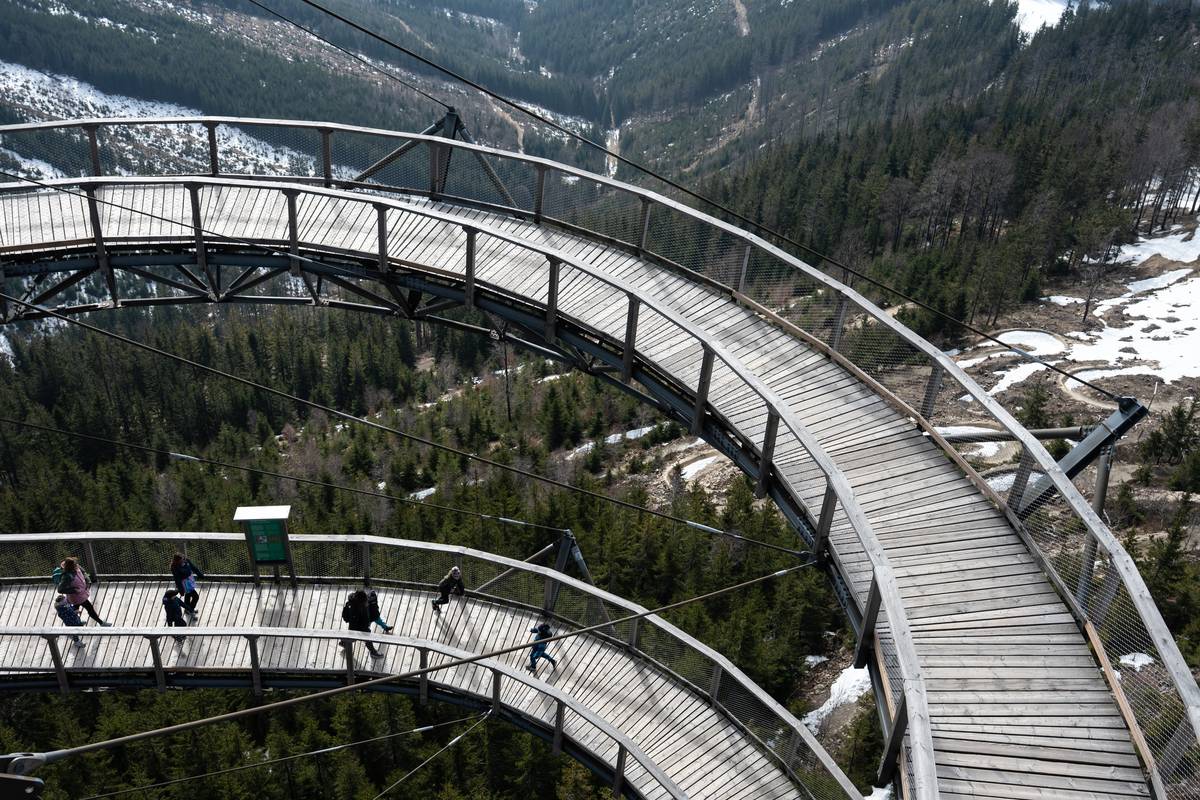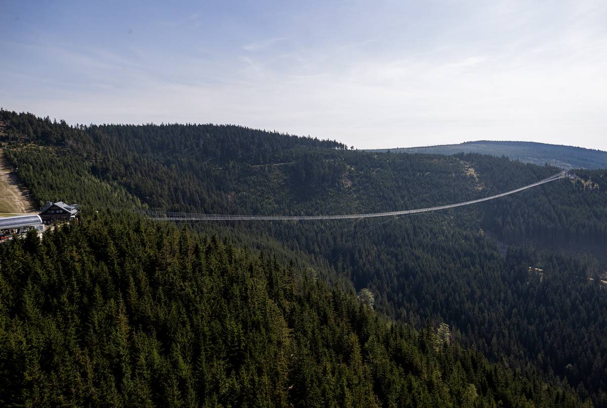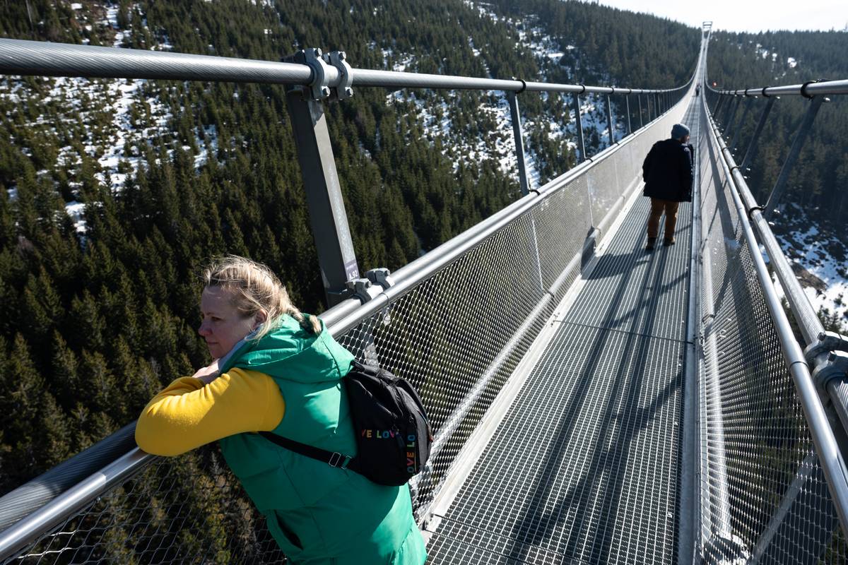 Visutý most se lehce pohupuje. Někteří se proto chytají zábradlí. Ne všichni se ale na Sky Bridge odváží vyrazit. „Já jsem nešla, bojím se totiž výšek a tohle opravdu není pro mě. Příroda je tu ale nádherná,“ prozradila Petra Straková, zatímco čekala na své přátele, kteří se na lávku vydali.