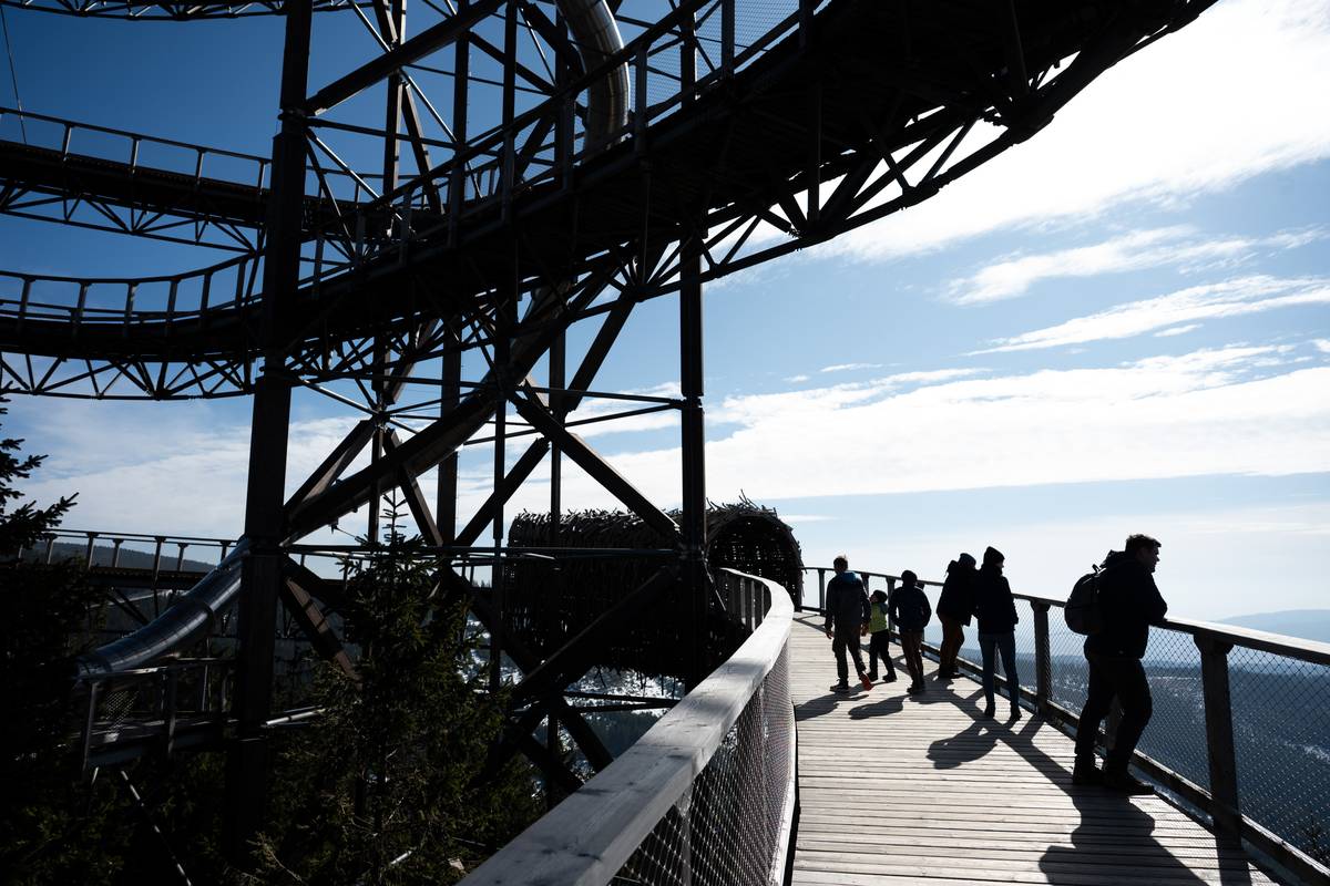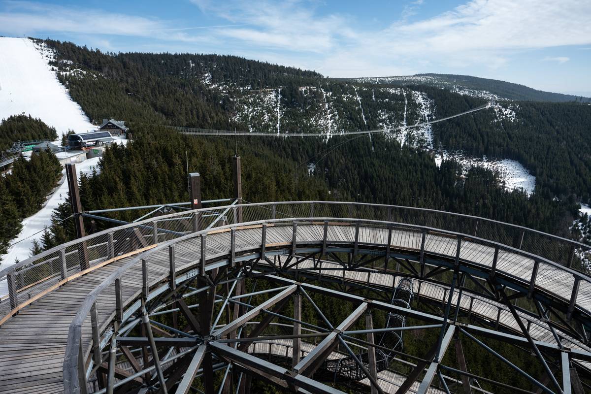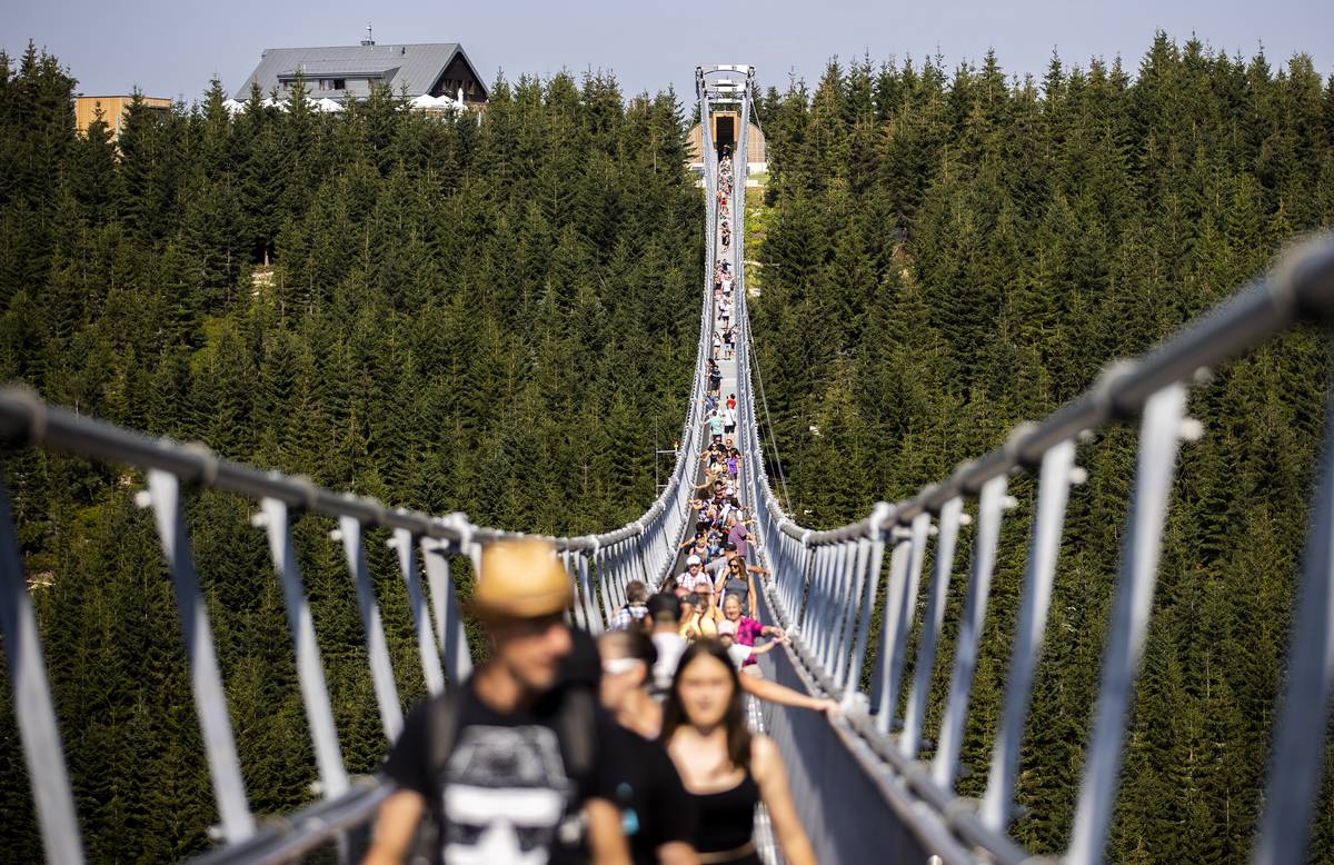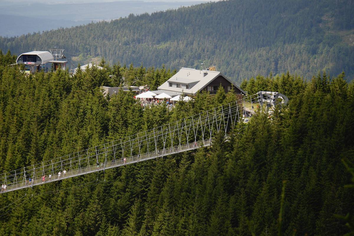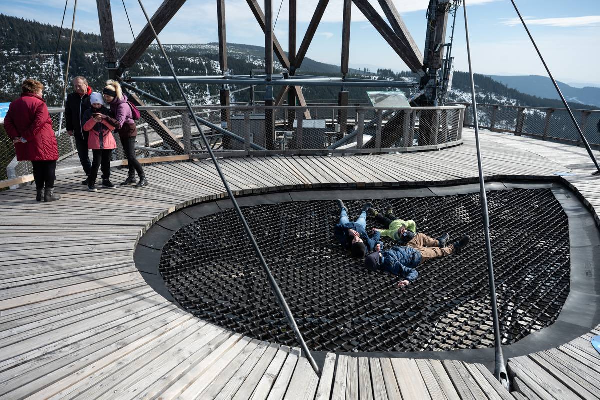 Visutý most se lehce pohupuje. Někteří se proto chytají zábradlí. Ne všichni se ale na Sky Bridge odváží vyrazit. „Já jsem nešla, bojím se totiž výšek a tohle opravdu není pro mě. Příroda je tu ale nádherná,“ prozradila Petra Straková, zatímco čekala na své přátele, kteří se na lávku vydali.