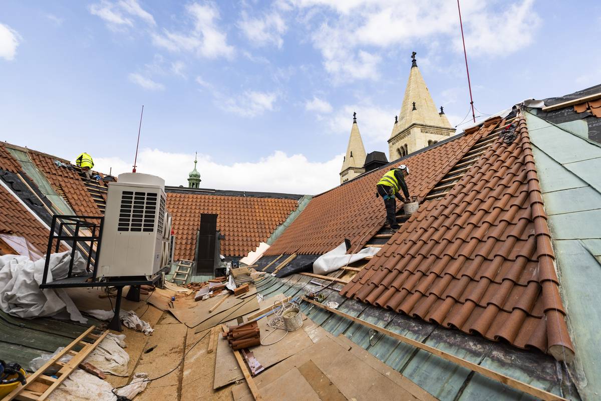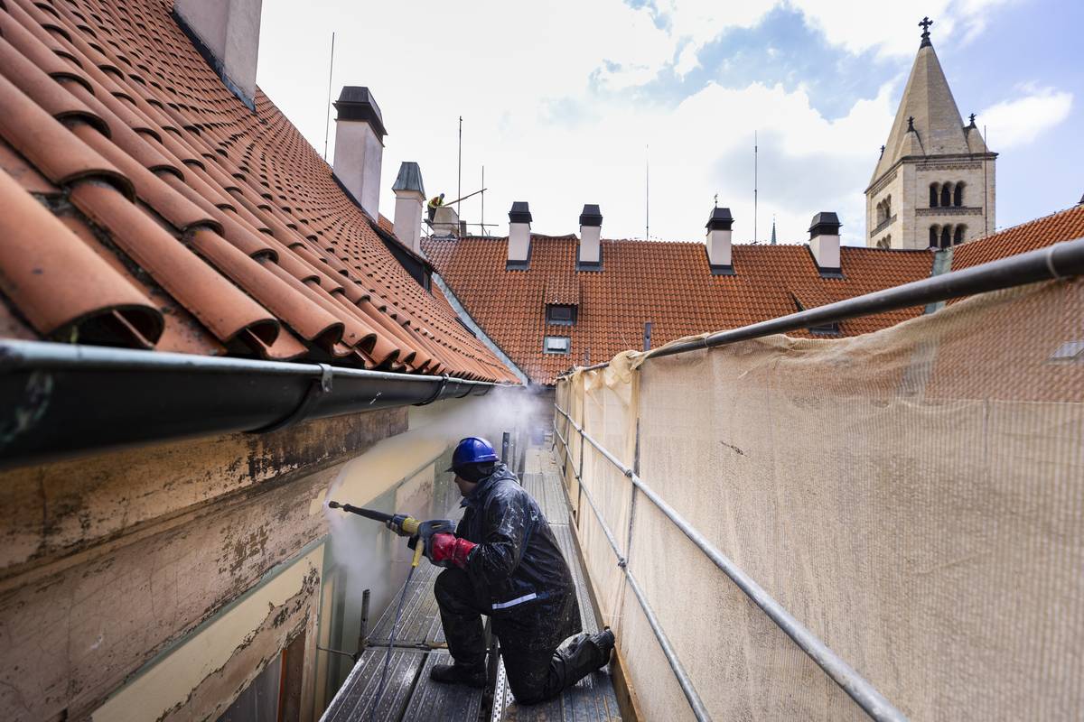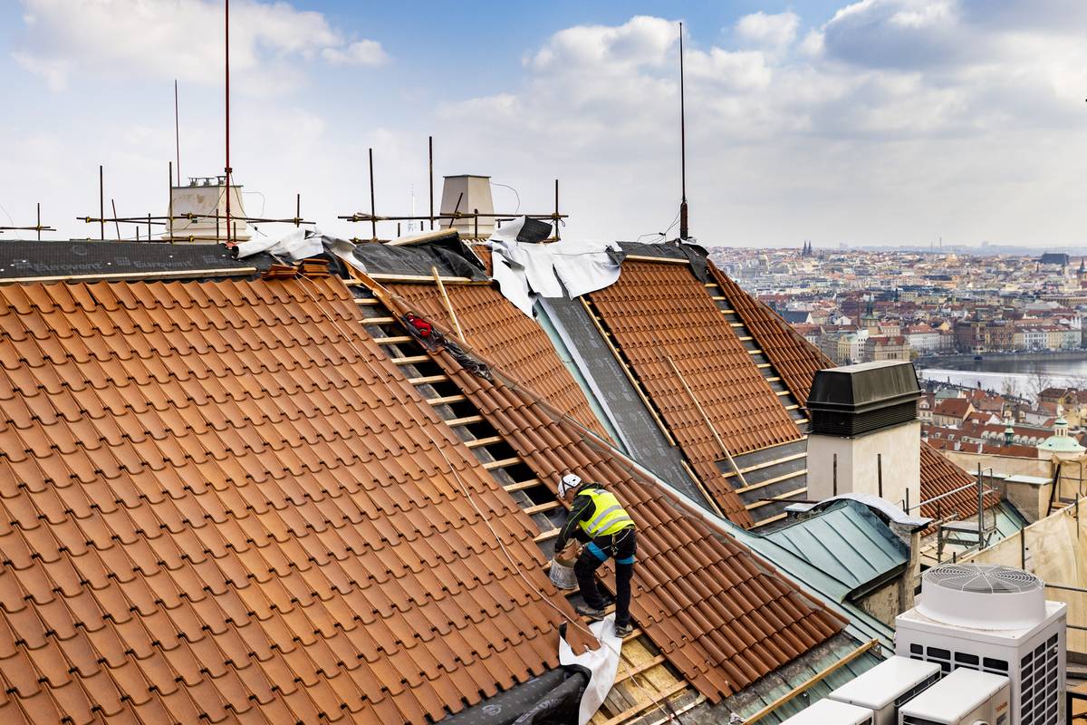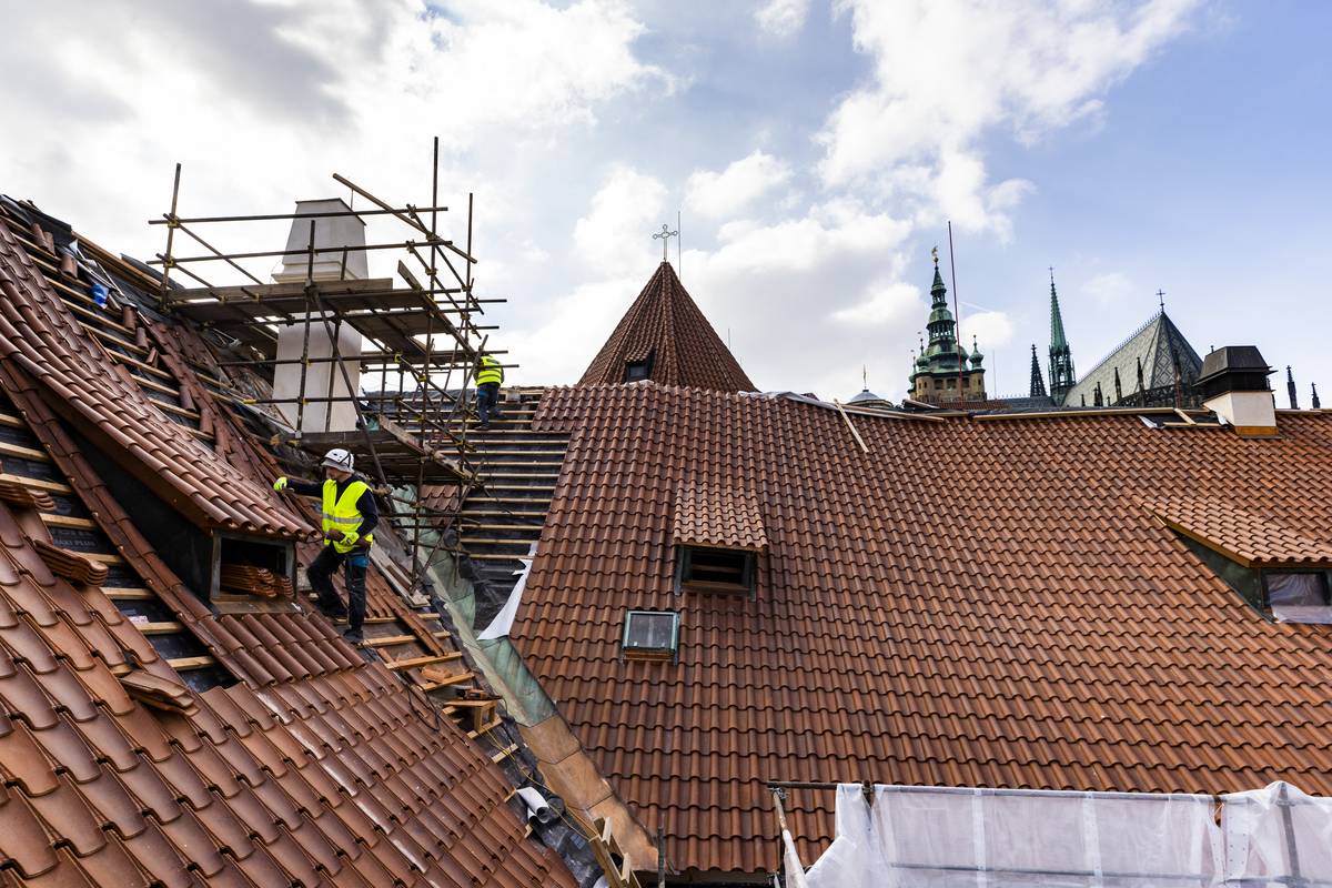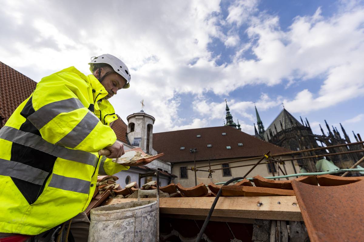 Pokrývači vyměňují přes šest tisíc metrů čtverečních střešní krytiny.