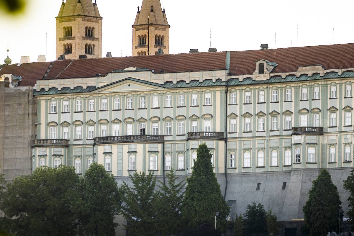 Ústav šlechtičen se nachází na Pražském hradě. Monumentální jižní průčelí budovy (na snímku budova zelené barvy) zabírá zhruba pětinu panoramatu Pražského hradu.