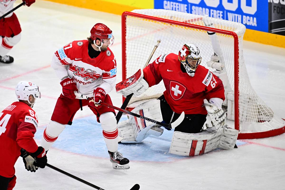 Švýcaři slaví branku v semifinálovém klání proti Dánsku.