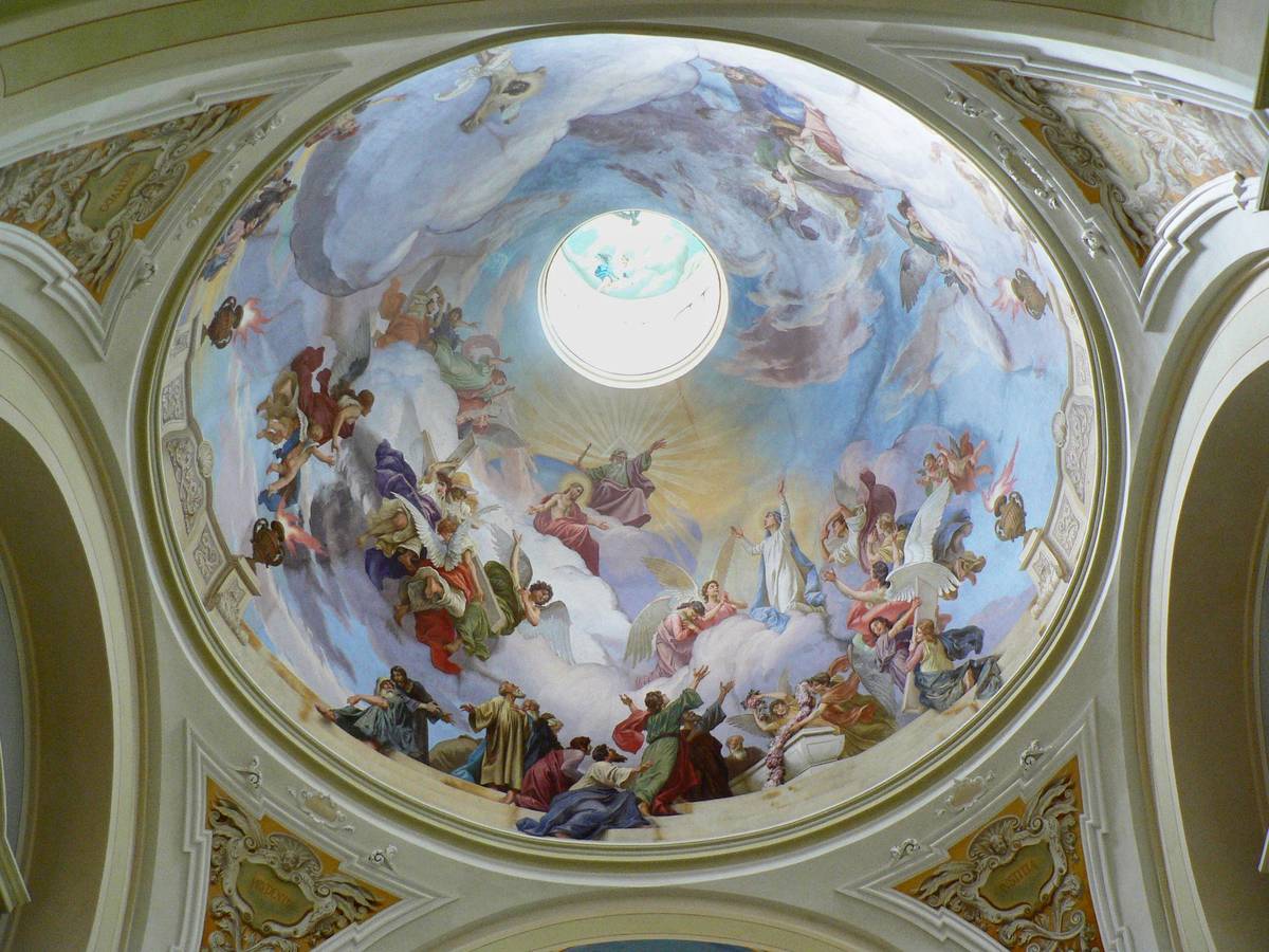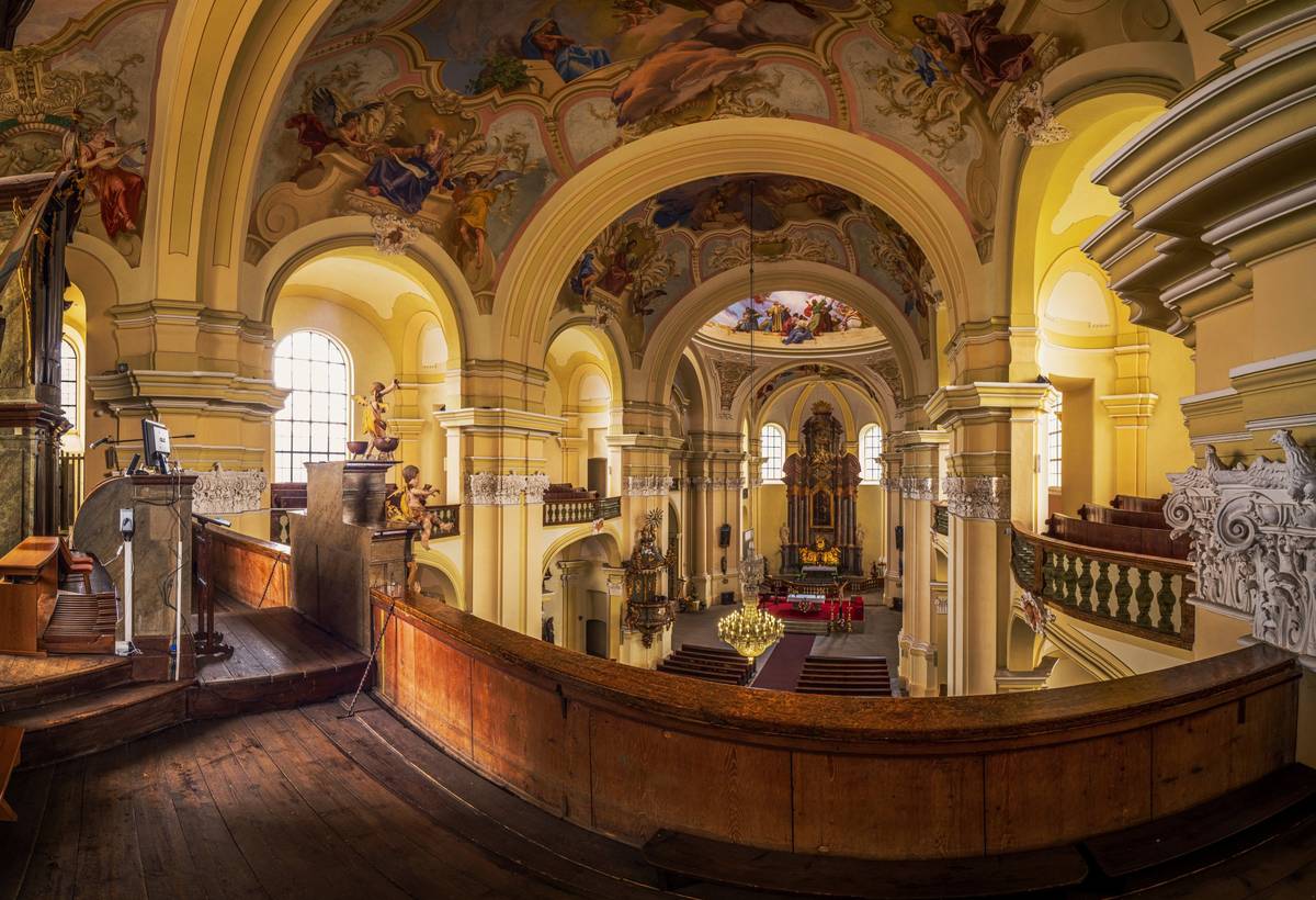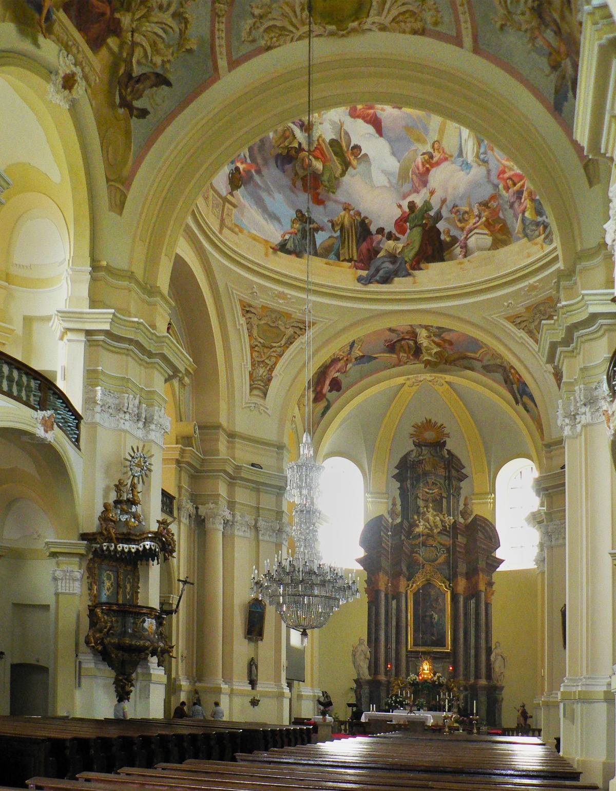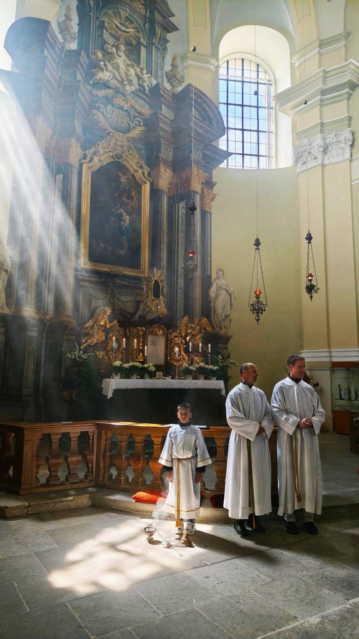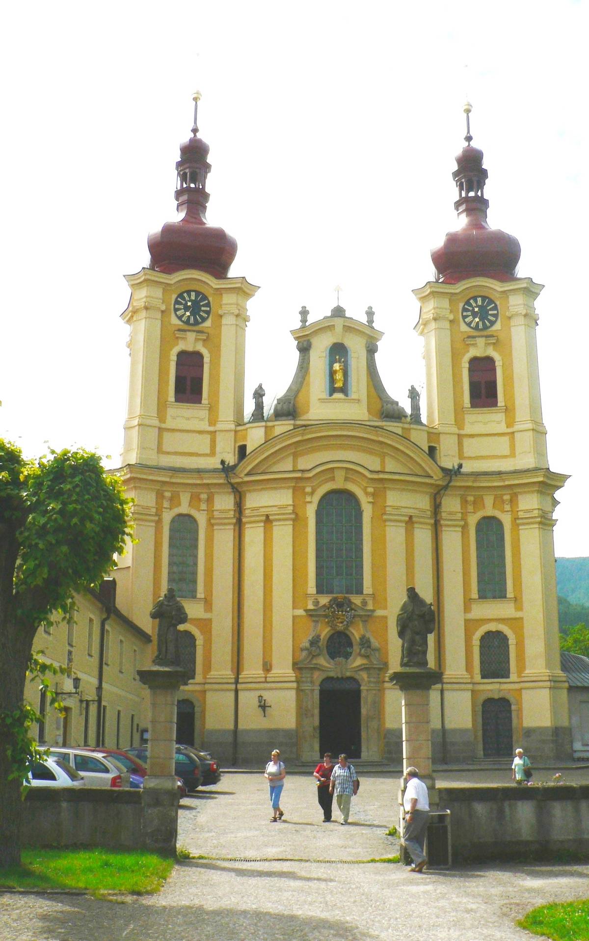 Obnovený erb Clamm-Gallasů na severním průčelí chrámu