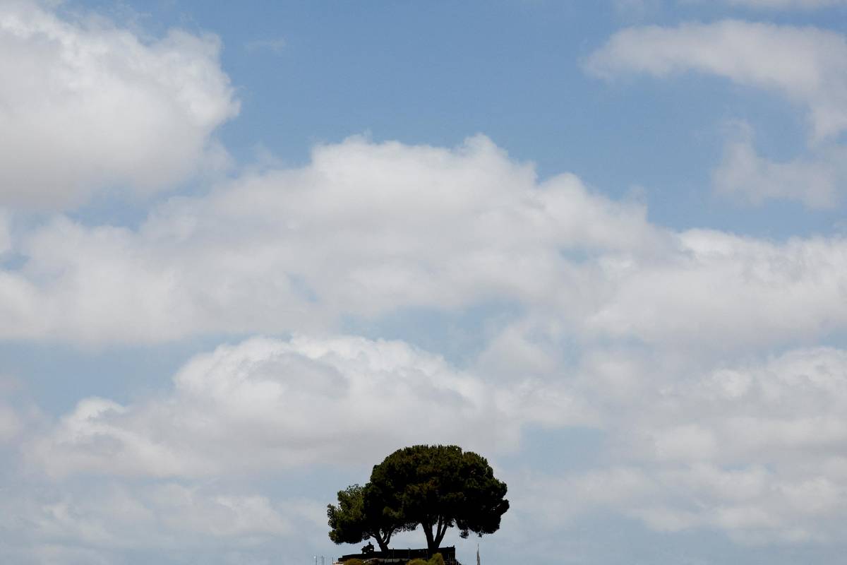 Muž sedí pod stromem nedaleko hranice mezi Izraelem a Gazou a hledí na Pásmo Gazy z izraelské strany.