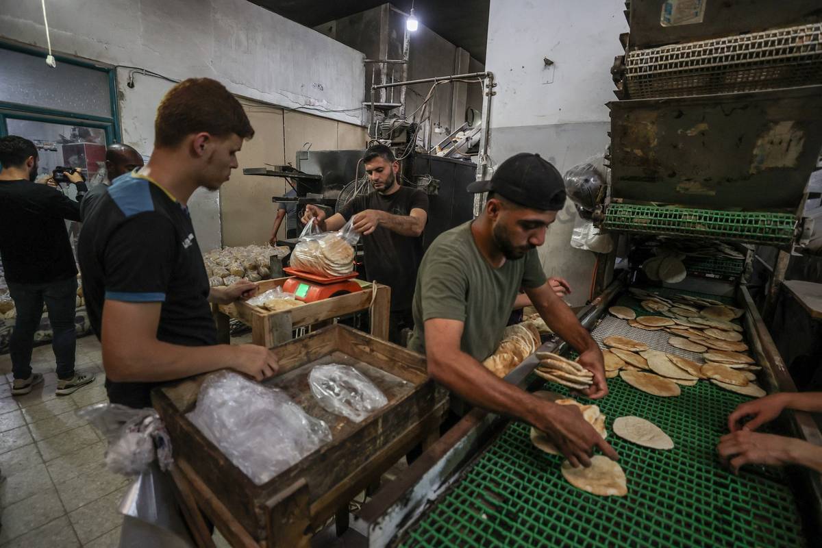 Do Pásma Gazy po bezmála třech měsících dorazily dodávky potravin. Na snímku je pekárna v Dajr Balahu. (22. května)