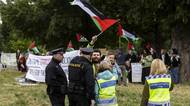 Protestující křičí hesla „Děti v Gaze hladoví“ či „Hanba vám!“